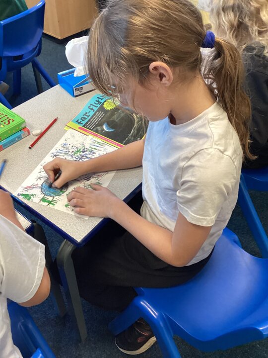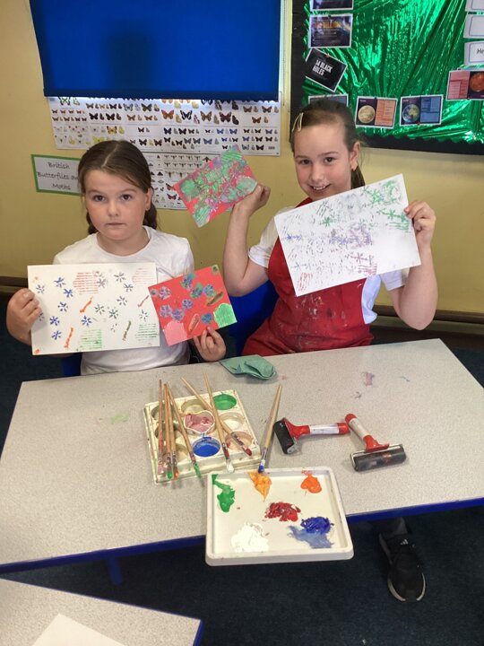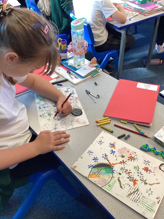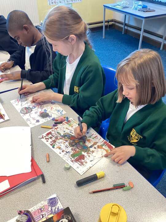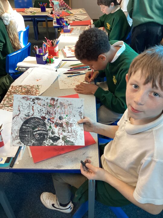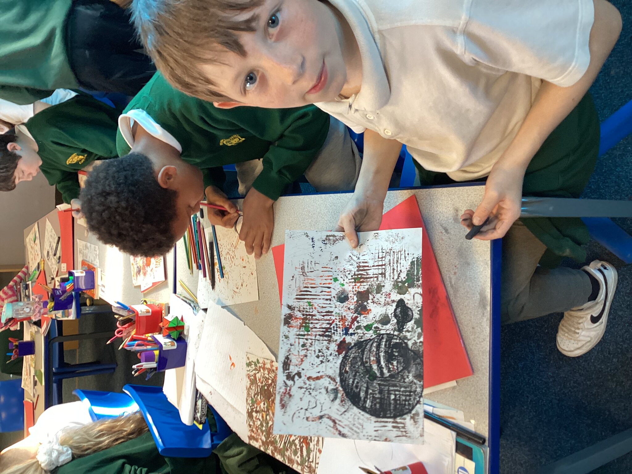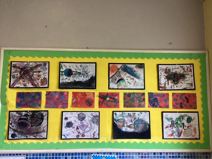 Over the last couple of Art lessons, Upper School have been preparing a space themed piece using a printed background using their own hand made print plate and then adding space themed details with a different media such as chalk, charcoal, pastels and pens. The gallery shows the process the children went through and then the final pieces which are now up on display in the classroom. We are all very pleased with the outcome! They look fabulous!