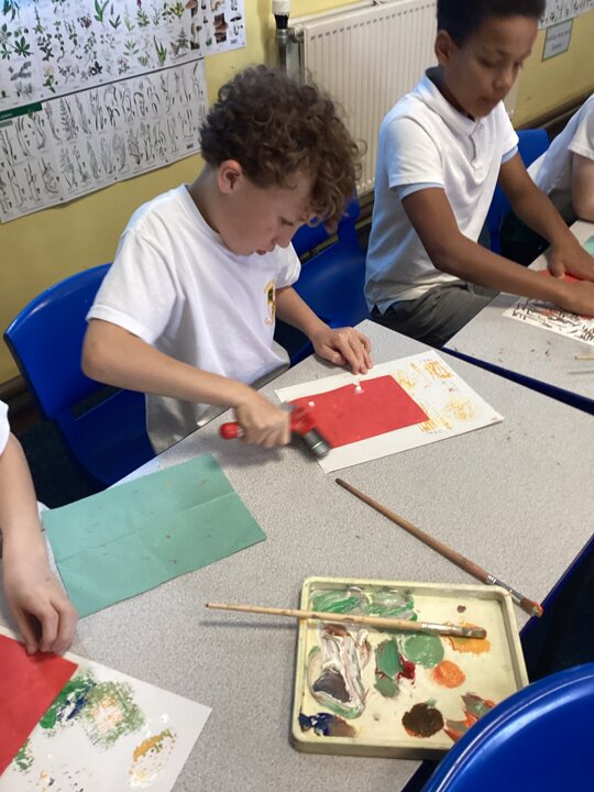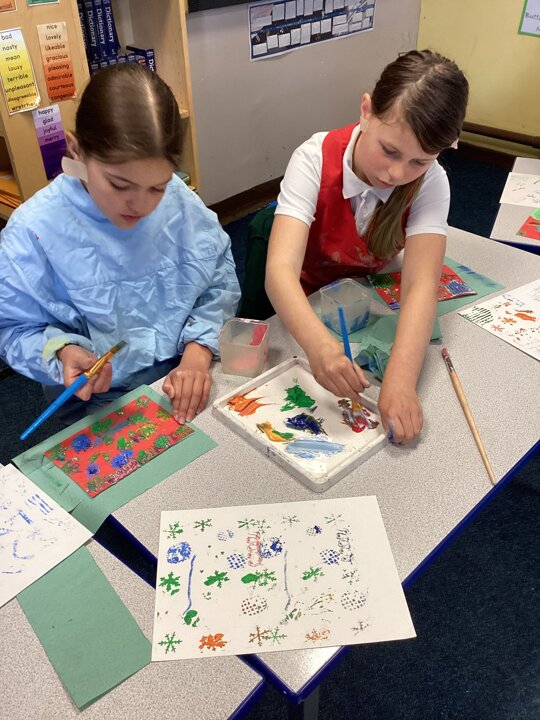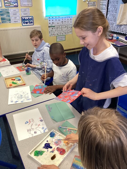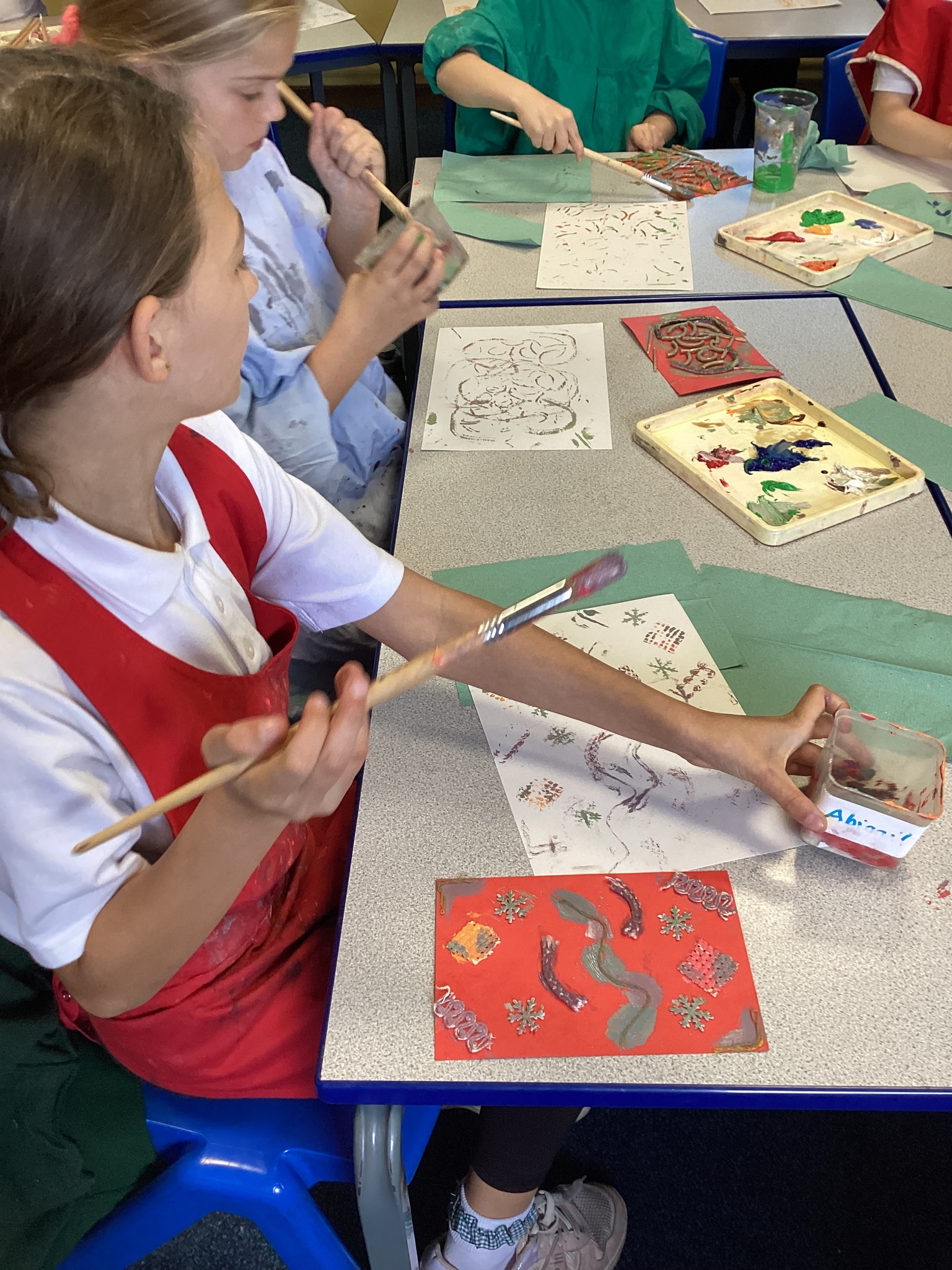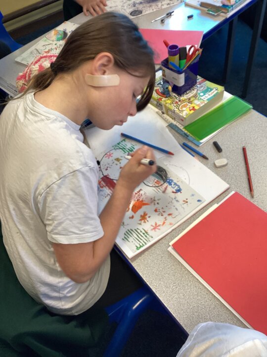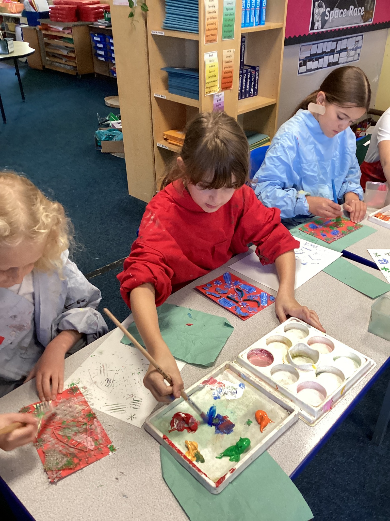 Over the last couple of Art lessons, Upper School have been preparing a space themed piece using a printed background using their own hand made print plate and then adding space themed details with a different media such as chalk, charcoal, pastels and pens. The gallery shows the process the children went through and then the final pieces which are now up on display in the classroom. We are all very pleased with the outcome! They look fabulous!