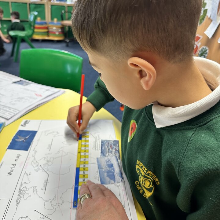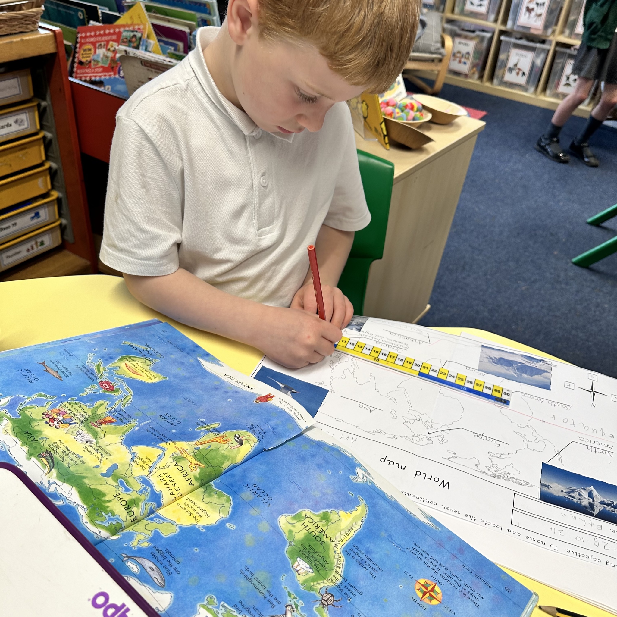 Today we learnt where the Equator is and what it means, then the children drew the imaginary line of the Equator on their maps after finding it in the atlas and on Google Earth.