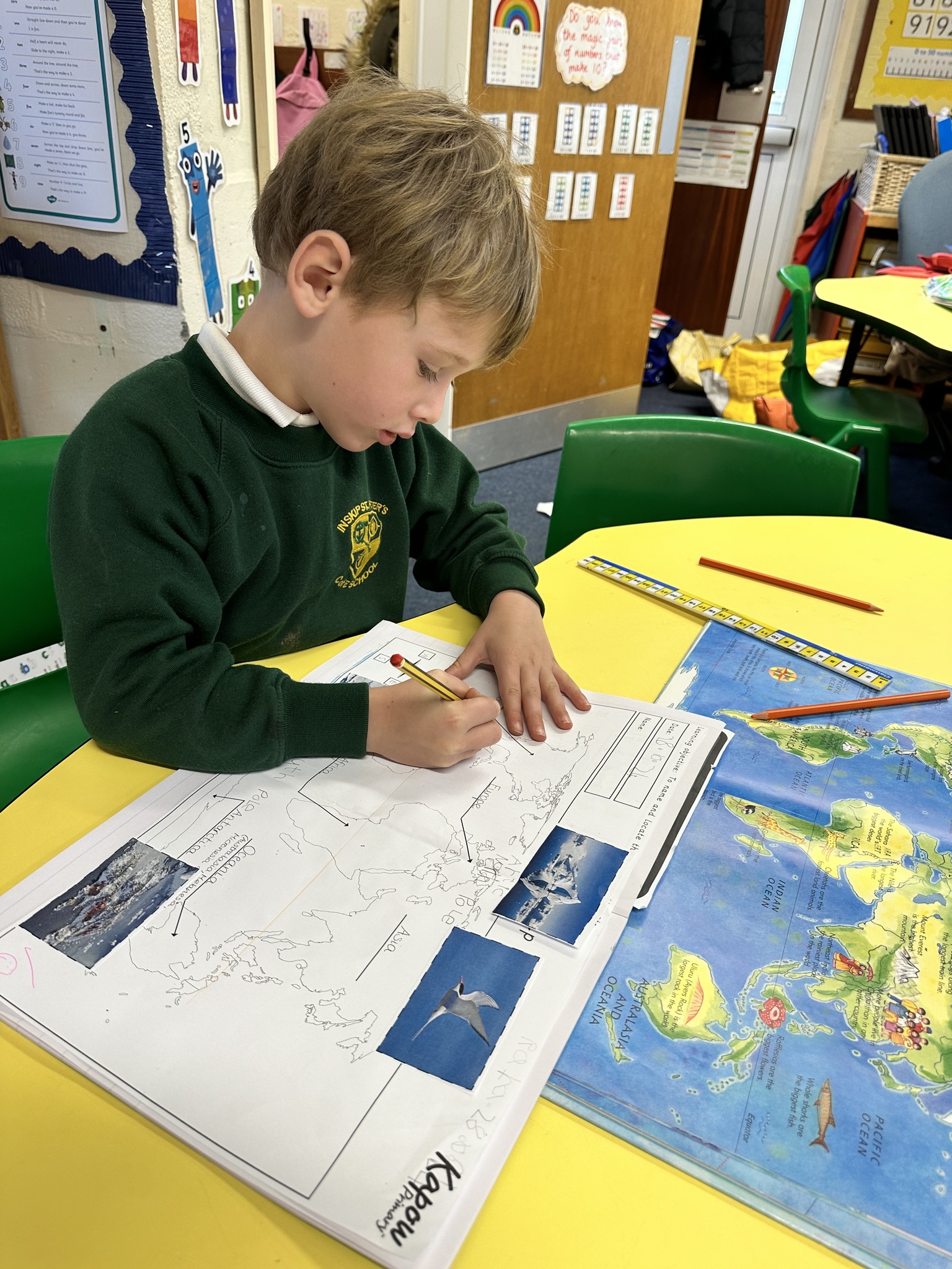 In our Geography lessons we have been learning the names of the seven continents and five oceans of the world. We have been investigating cold places in our quest to decide whether we would prefer to live in a hot or cold place.