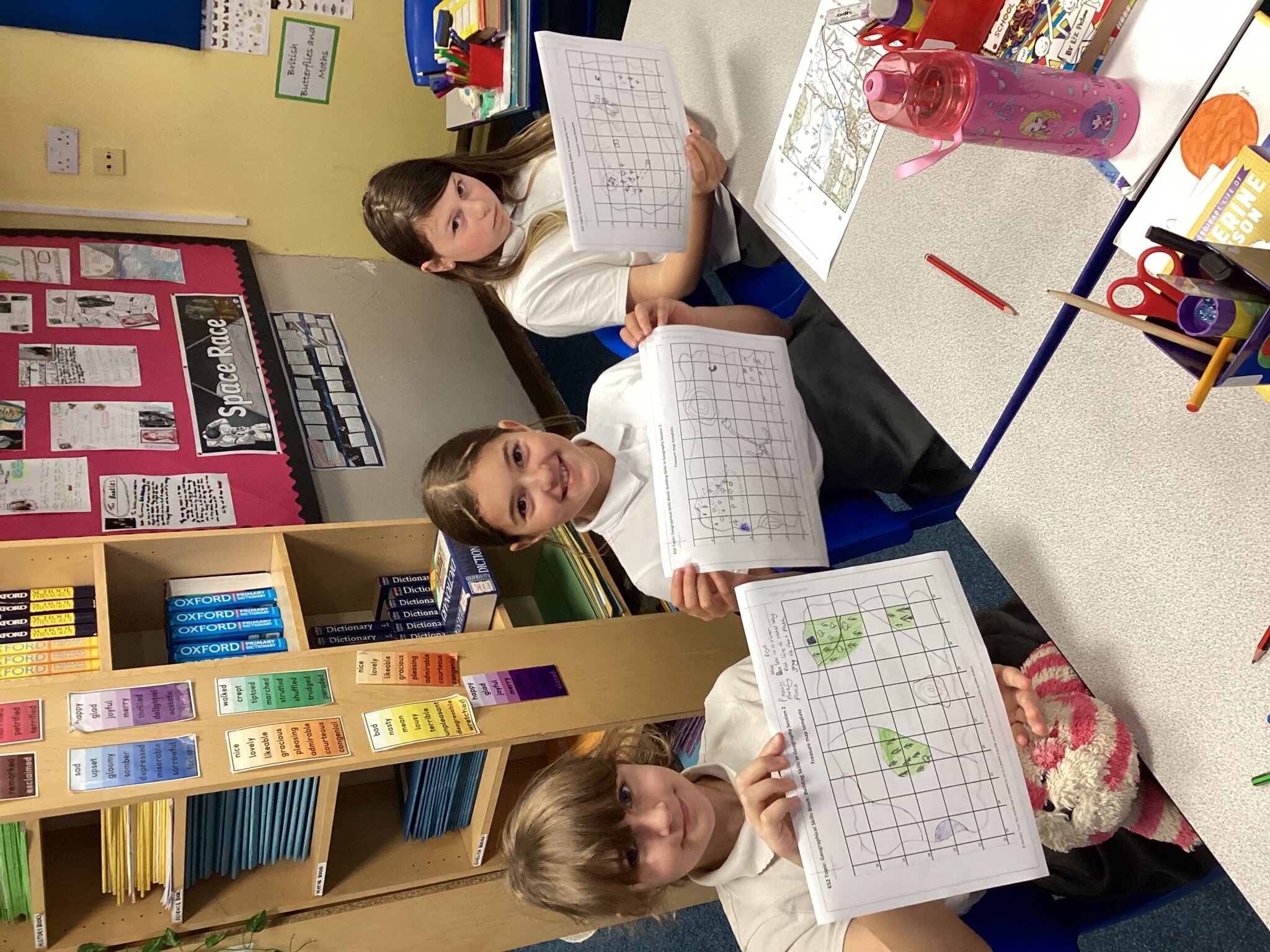 In Geography this week, the class learnt more about using maps to navigate. They practised using grid references to find symbols on maps and then began to learn to use a compass to travel. I gave the children a treasure hunt challenge in the playground where they had to follow compass directions to find the treasure buried on the field. They thoroughly enjoyed this and worked really well with their other team members to read the instructions and use the compass accurately. Everyone managed to find the treasure! After that the class made their own treasure islands using symbols found on OS maps. Their next challenge will be to write grid references and give compass directions for their clever friends to discover where their ‘treasure’ is hidden on their maps.