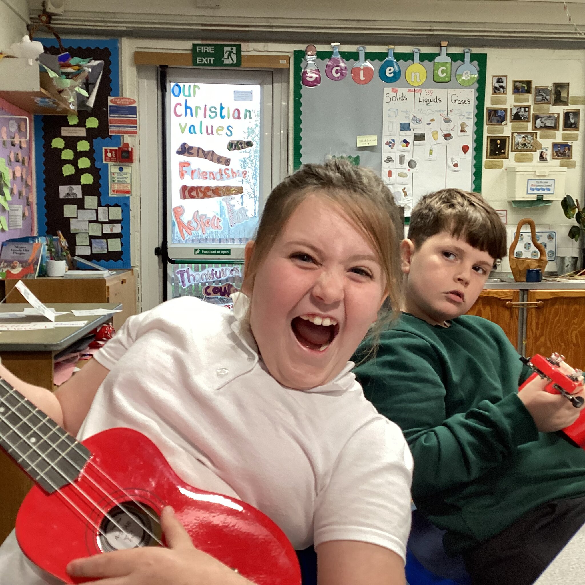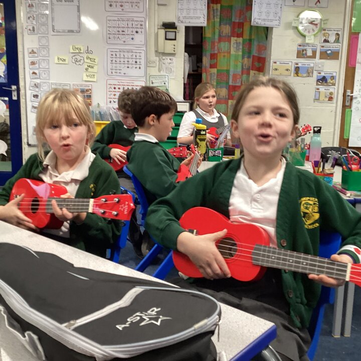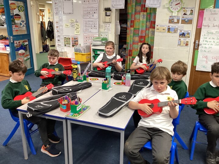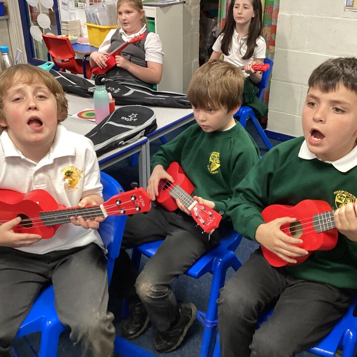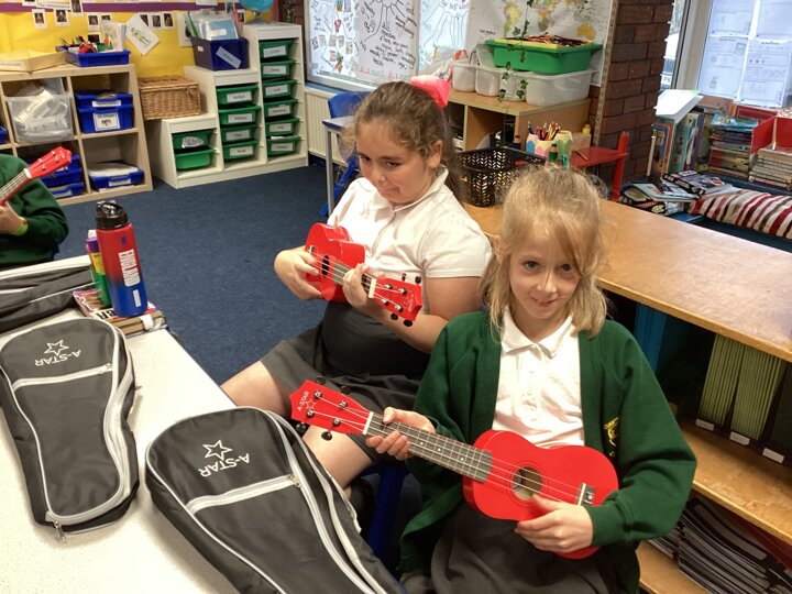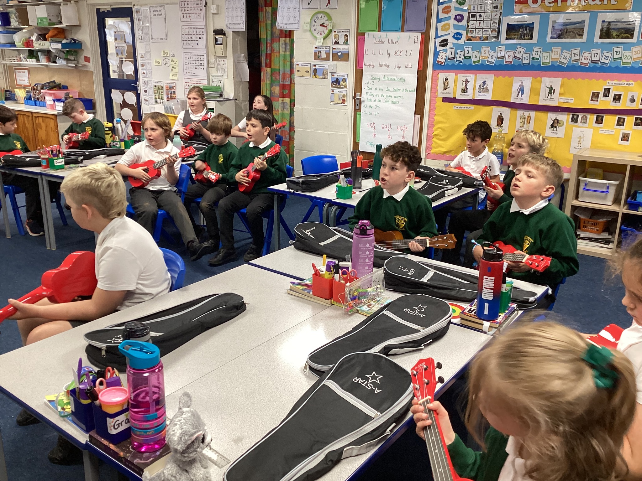 Middle School absolutely loved getting out the ukuleles. In our first lesson, we learnt the parts of the musical instrument, how to hold it, signals for our music lessons, the string names, how to tune a ukulele and how to strum in rhythm to a song!