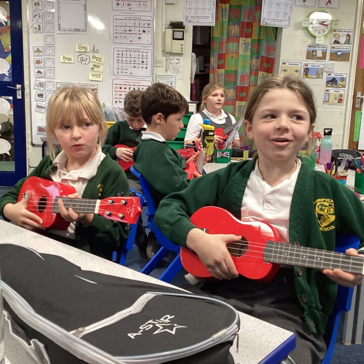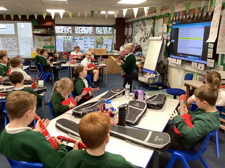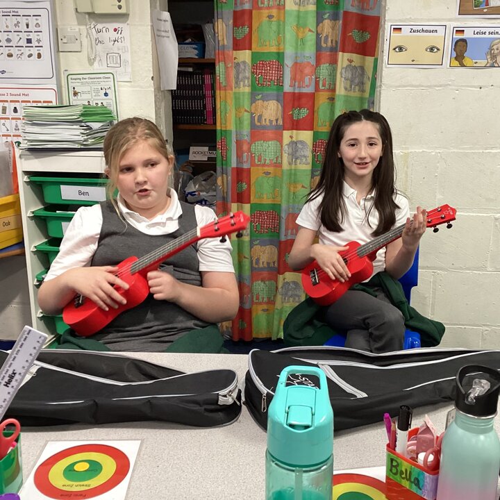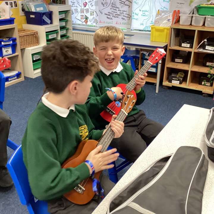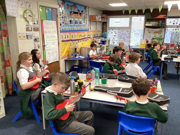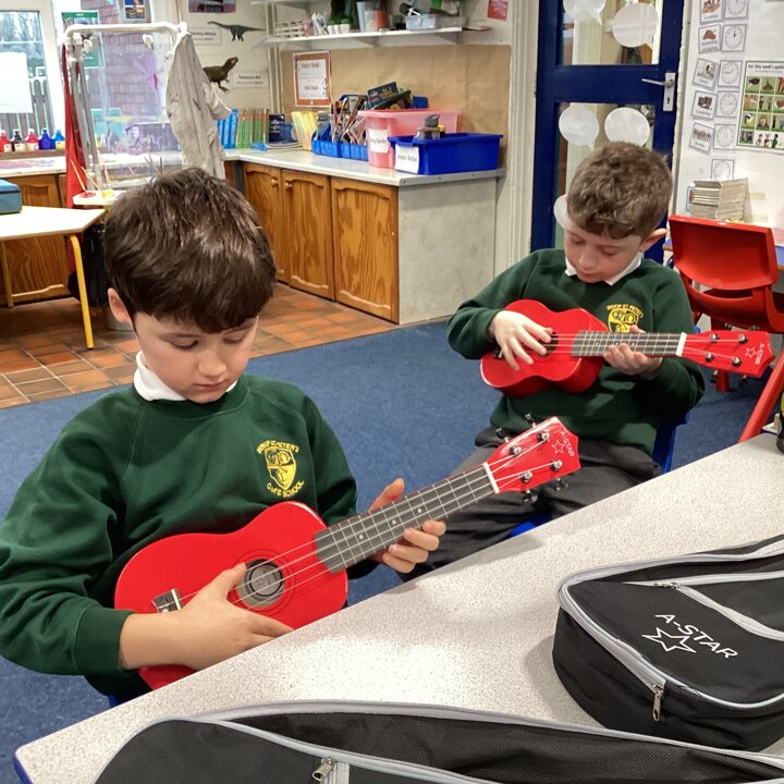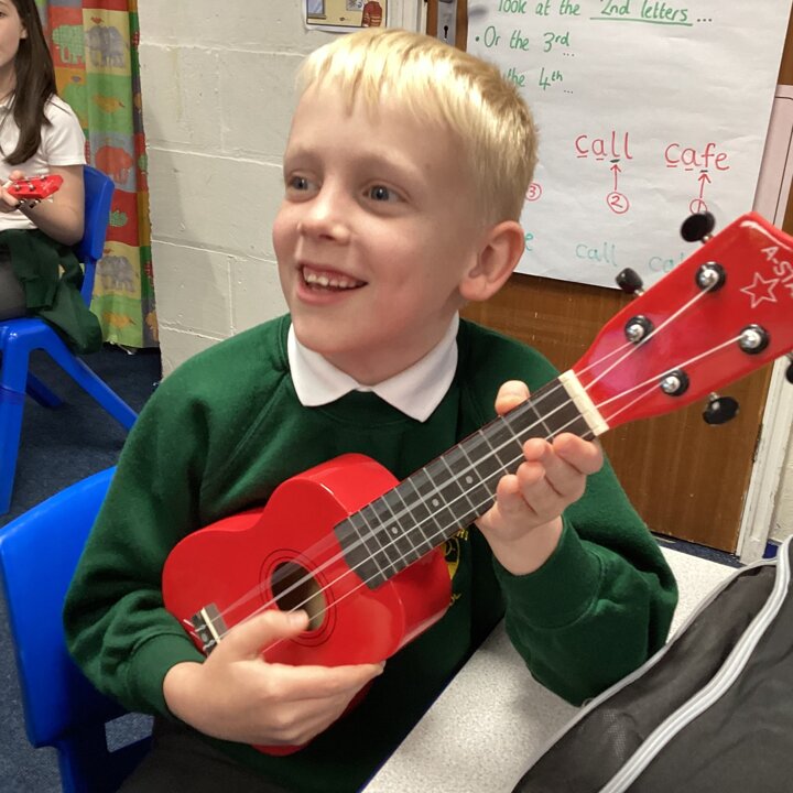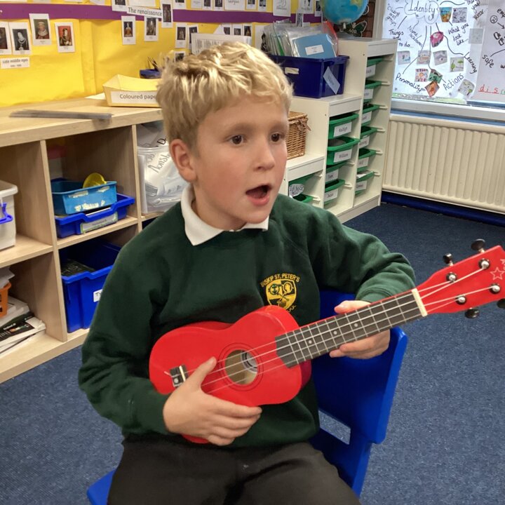 Middle School absolutely loved getting out the ukuleles. In our first lesson, we learnt the parts of the musical instrument, how to hold it, signals for our music lessons, the string names, how to tune a ukulele and how to strum in rhythm to a song!