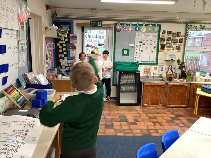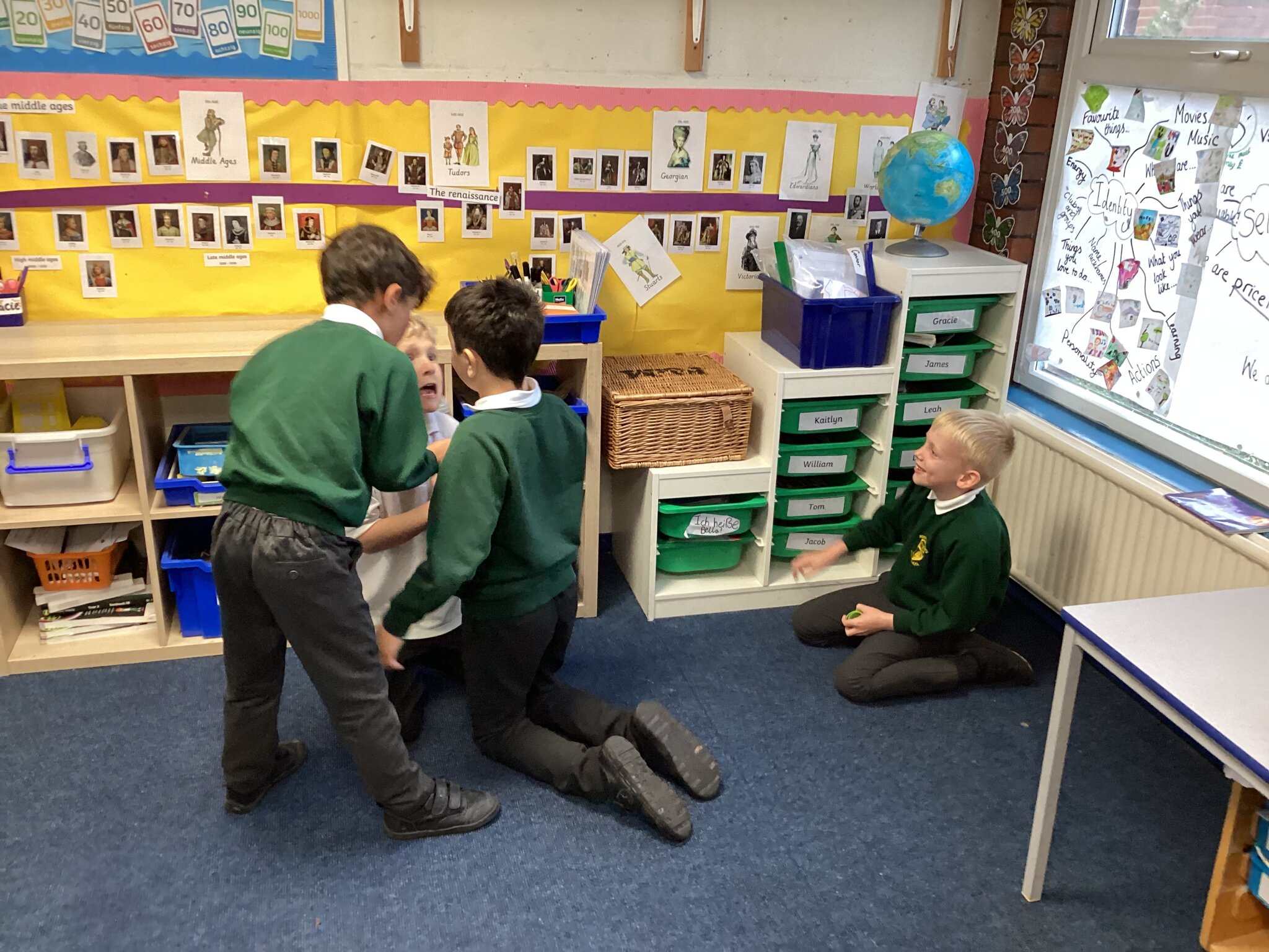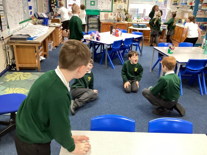 Middle School met The Snarget boys in Stig of the Dump and reinacted the moment they came under attack by Barney as he tried to scare them away to protect Stig and the den. They also made lots of predictions about what they thought might be in the box left by the Snarget boys, and what they thought Barney might do with the box and contents…