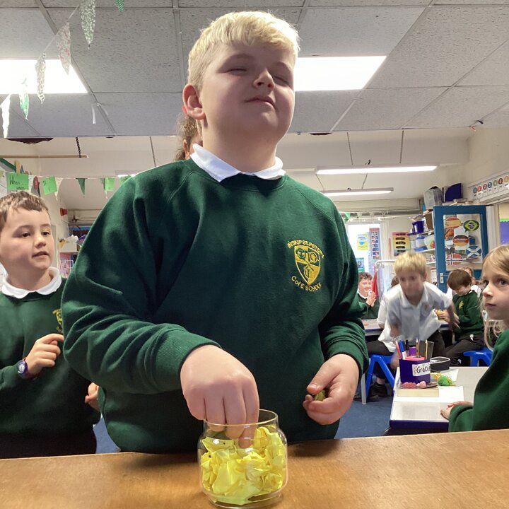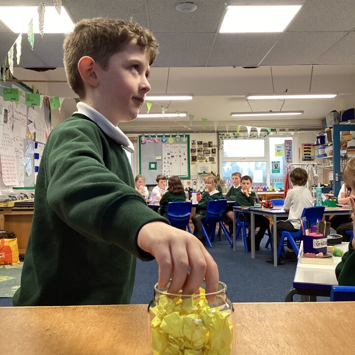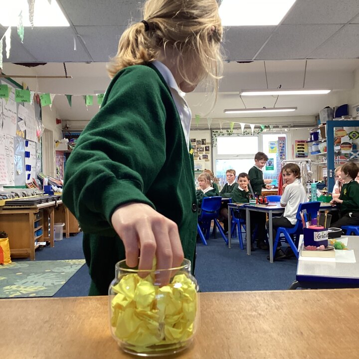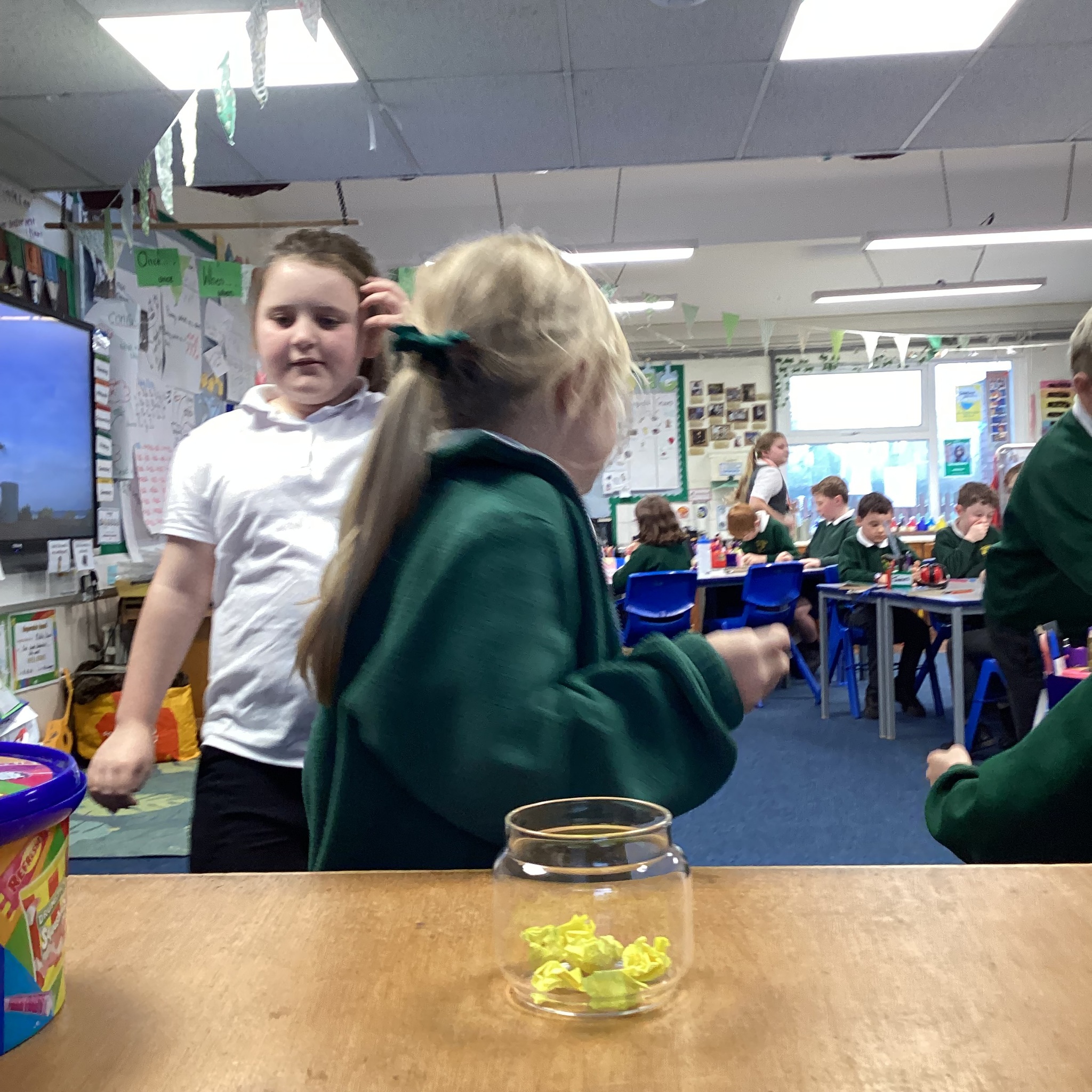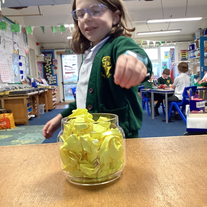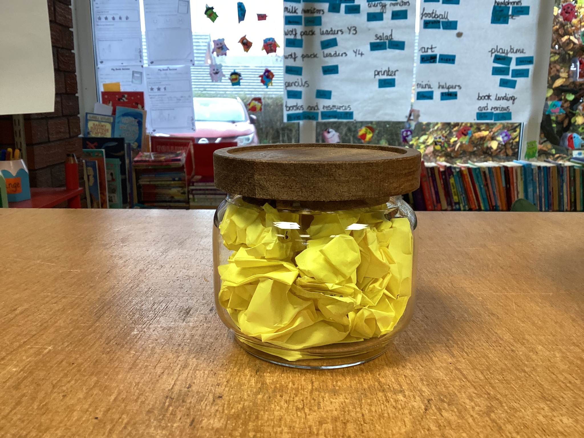 So, everyone wrote their names on two post-its, scrunched them up and popped them in the jar.