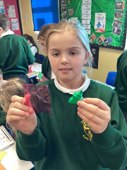 In Science this week, the children furthered their learning about light by finding out about colour and why we see different colours. We learnt about reflected and absorbed colours from light hitting objects. The children experimented with coloured filters to see what happened to the colours of objects when covered by particular filters. The children were amazed to observe what happened when looking at class equipment through red, blue and green filters. Some objects turned black!