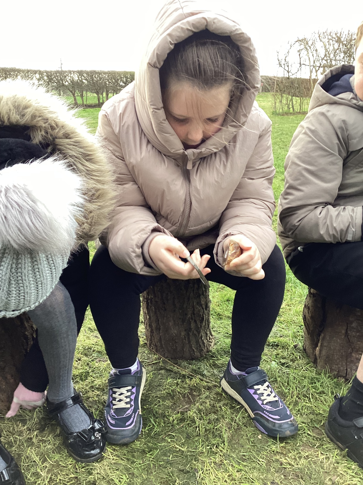 Thank you so much to Claire for joining us for the morning to bring our Stone Age exploration to life! We learnt about how they would have lit fires, particularly towards the end of the Stone Age with the discovery of metal. We learnt how they would have kept fires going and how they would have transported their fire.