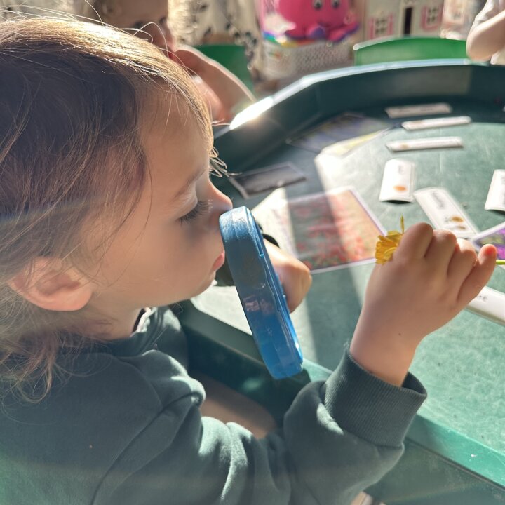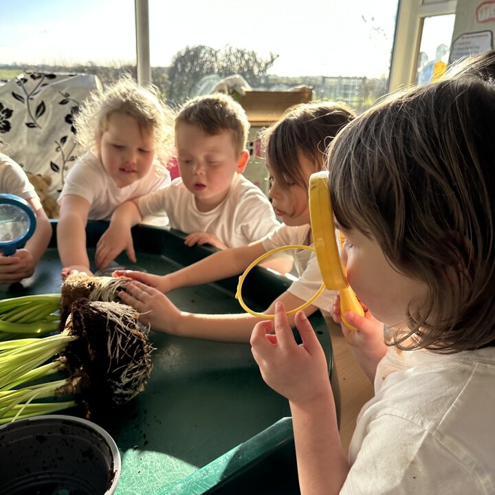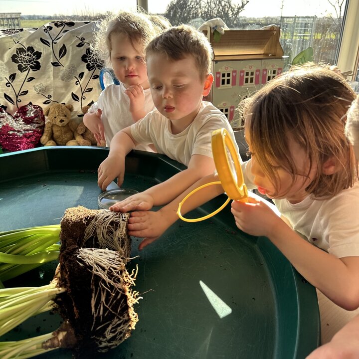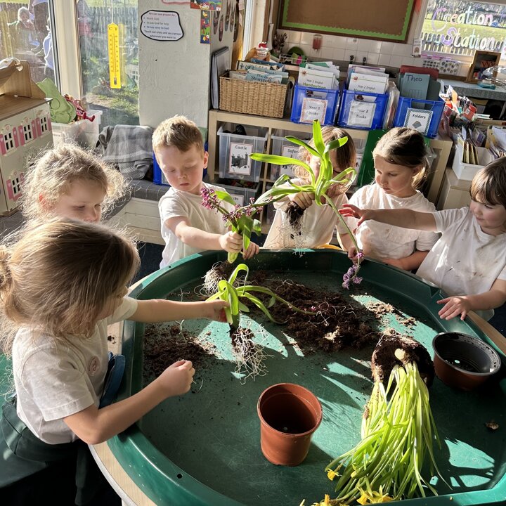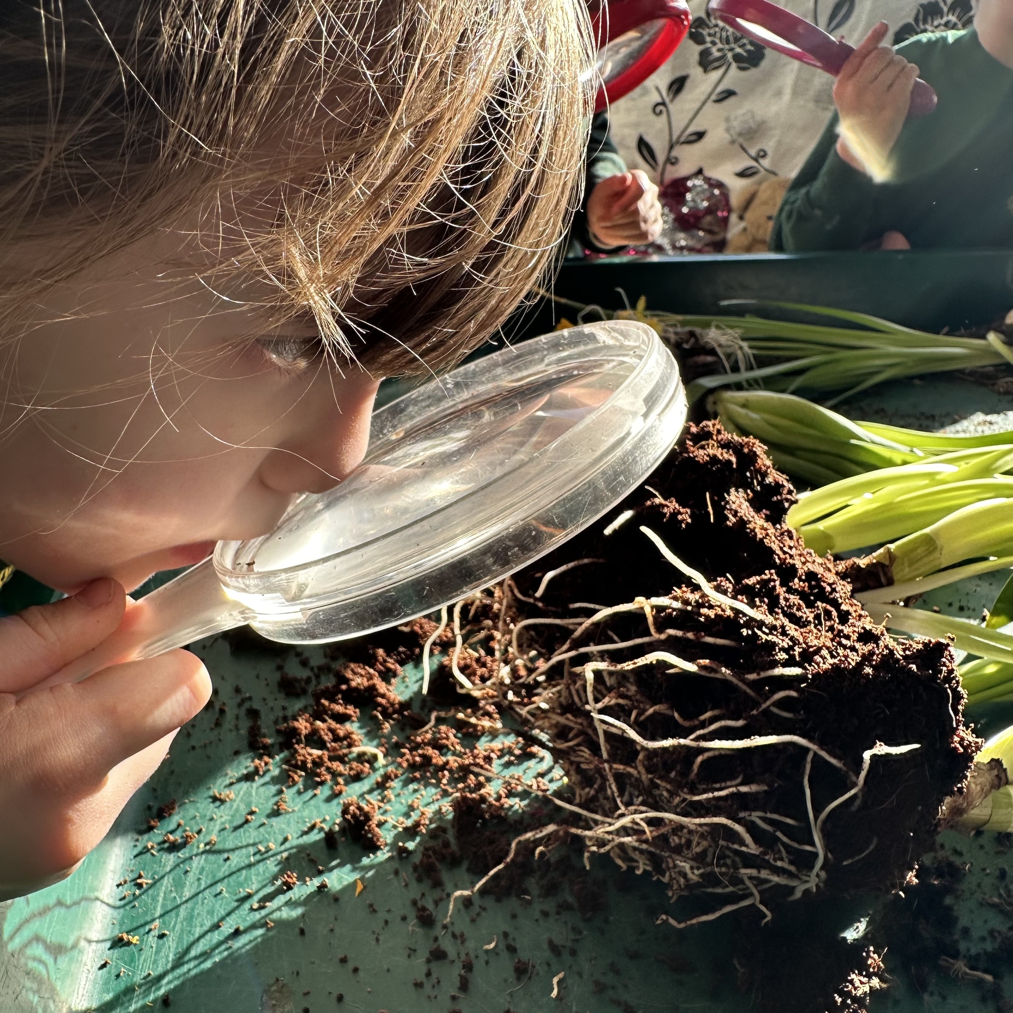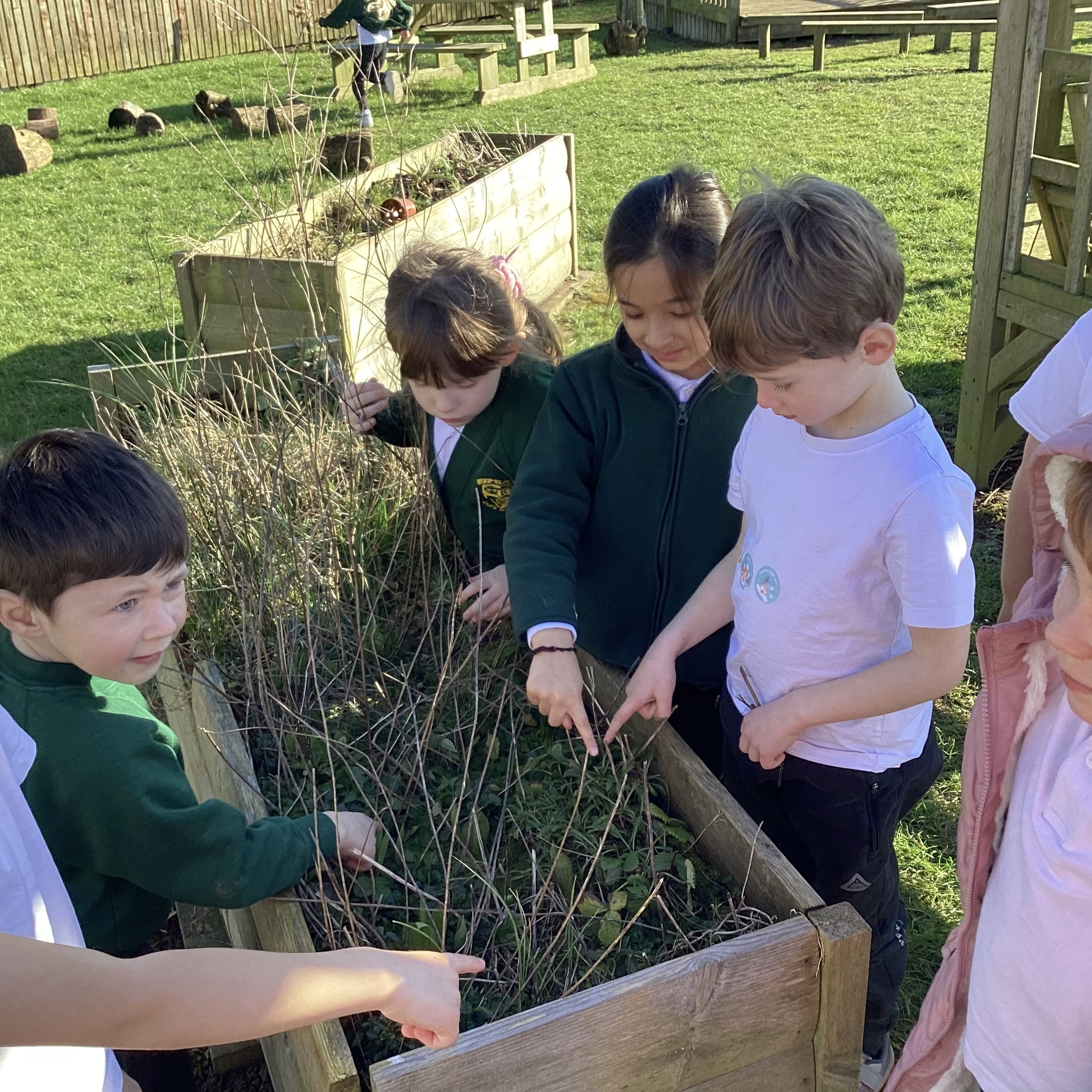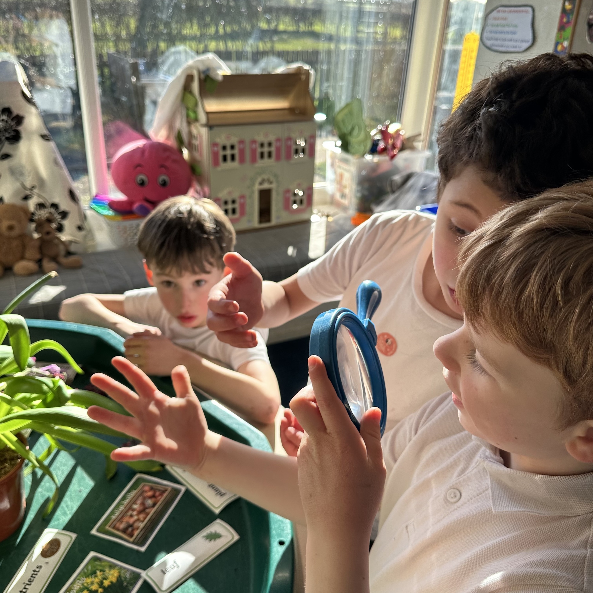 Each term we dip in and out of science learning about plants, observing what is growing at different times of the year. The children build up their knowledge and understanding of seasonal changes and the different stages of, and needs for, plant growth.
