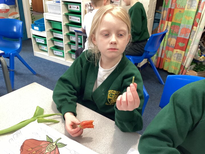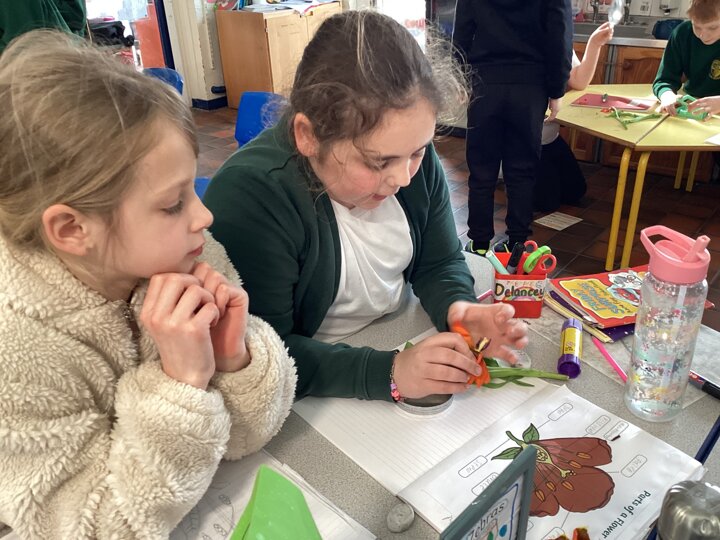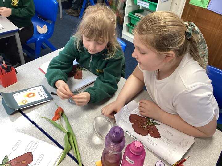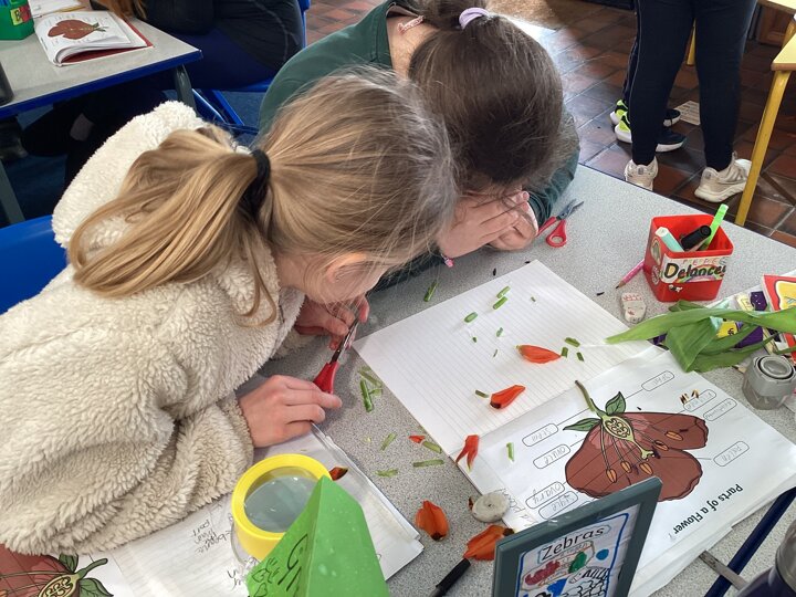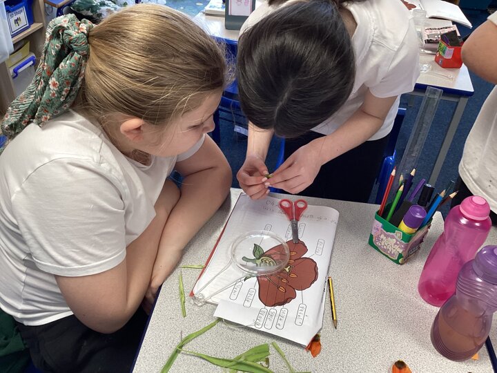 To begin, we looked at the different parts of a plant. This included lots of parts we had seen before in lower school but also some new ones. We looked more closely at what was inside the flowering part of a plant and learned the names for each part. We then took some real flowers and pulled them apart to try and identify the parts beside our diagrams. We looked at how the stigma was important for transferring pollen to insects and other pollinators.