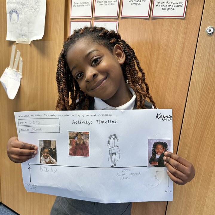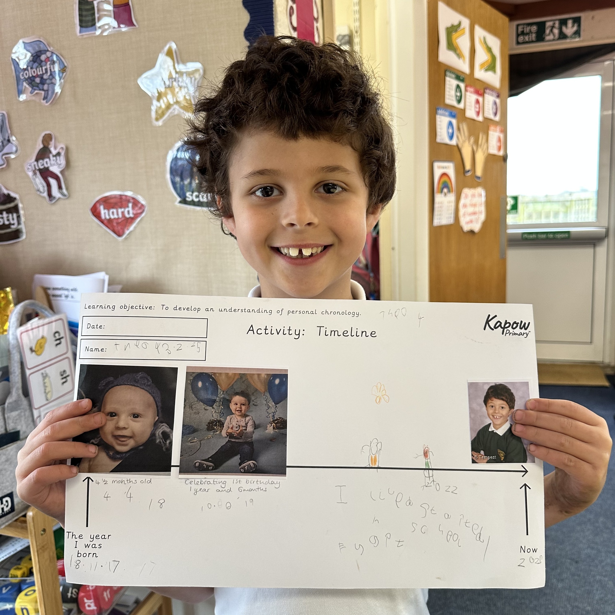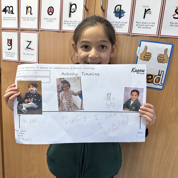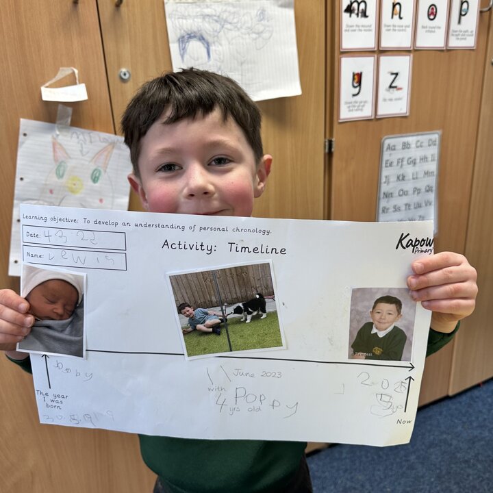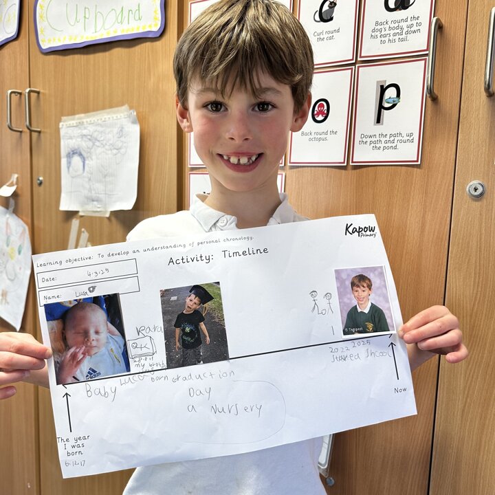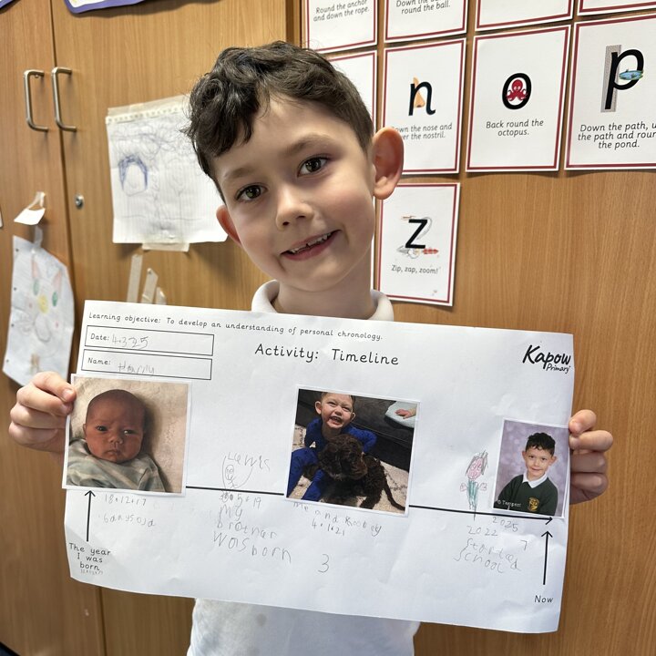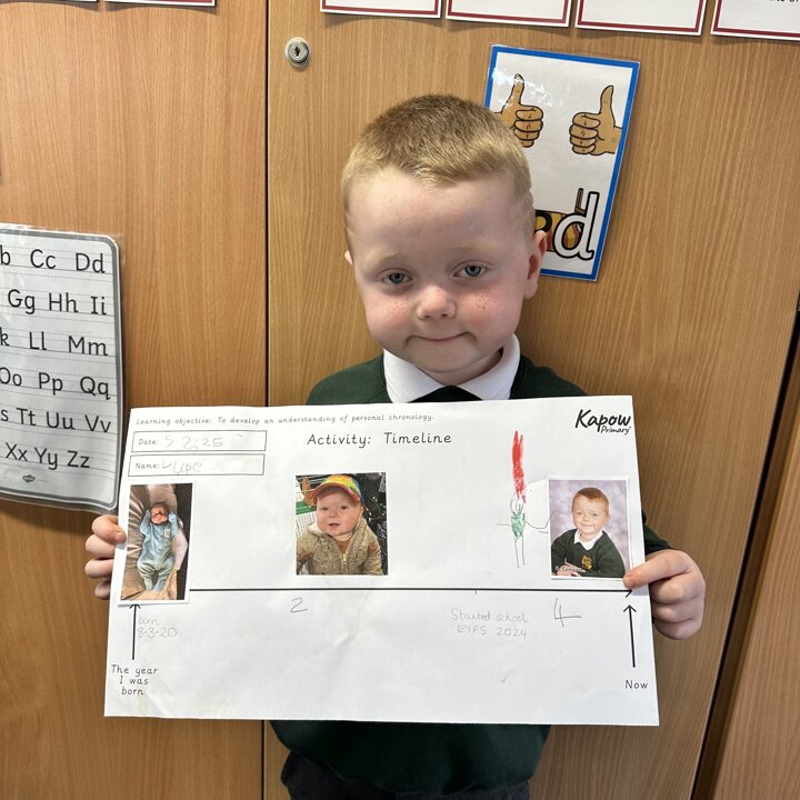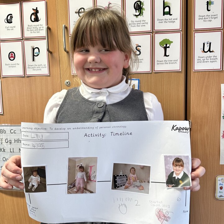 During this half term the children are learning some similarities and differences between the past and their own lives. They have learnt that a timeline shows the order events in the past happened. We started by looking at now on a timeline and then looked back.