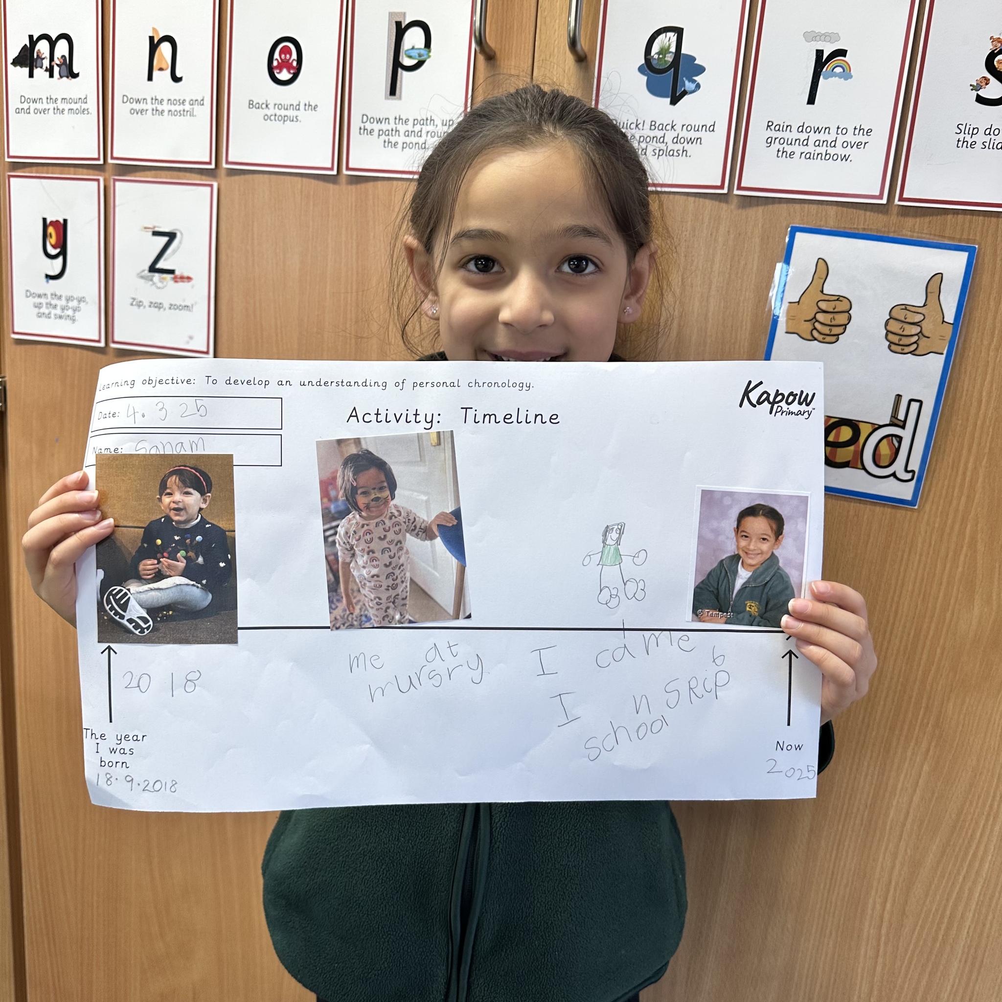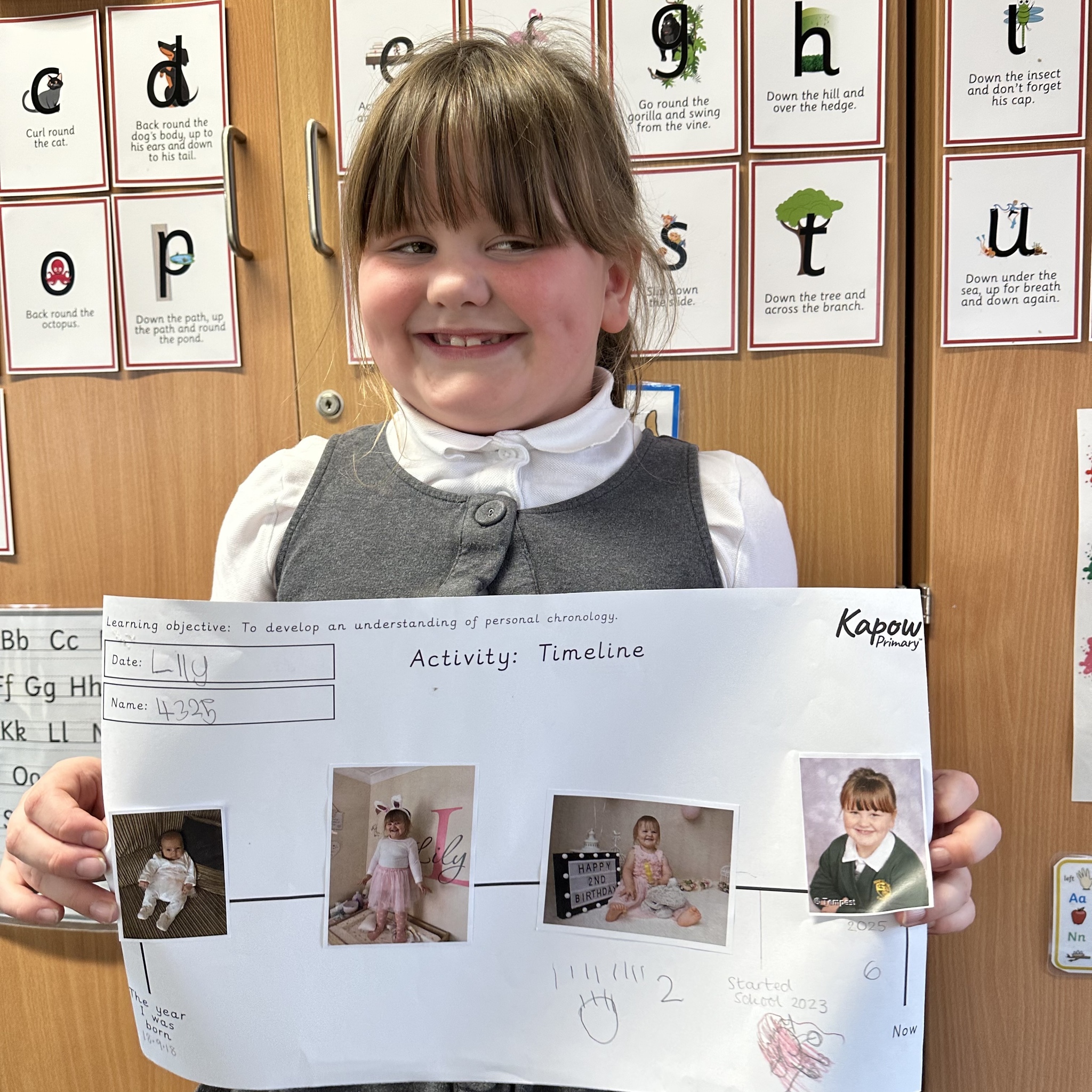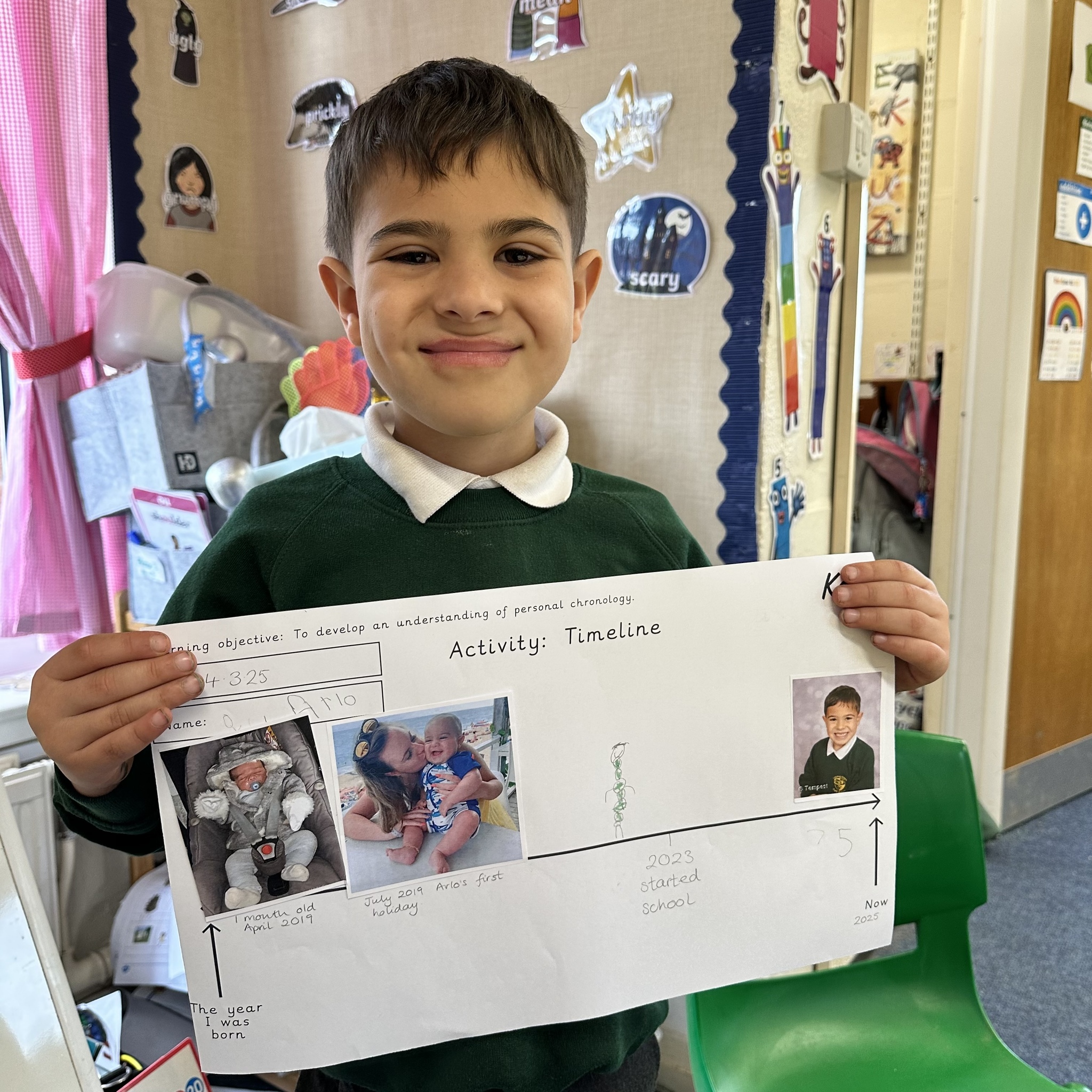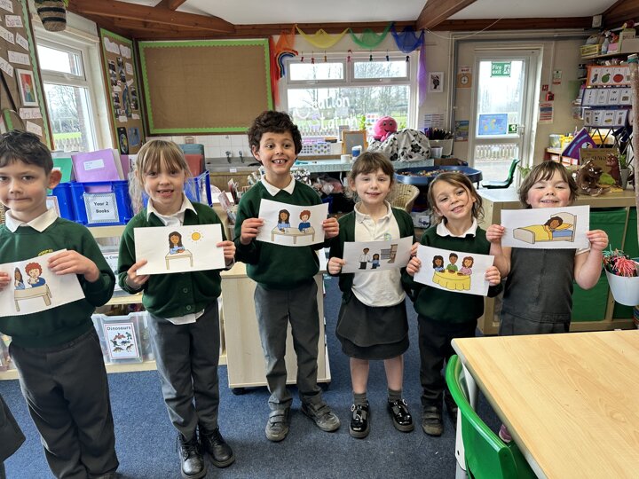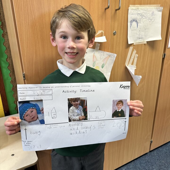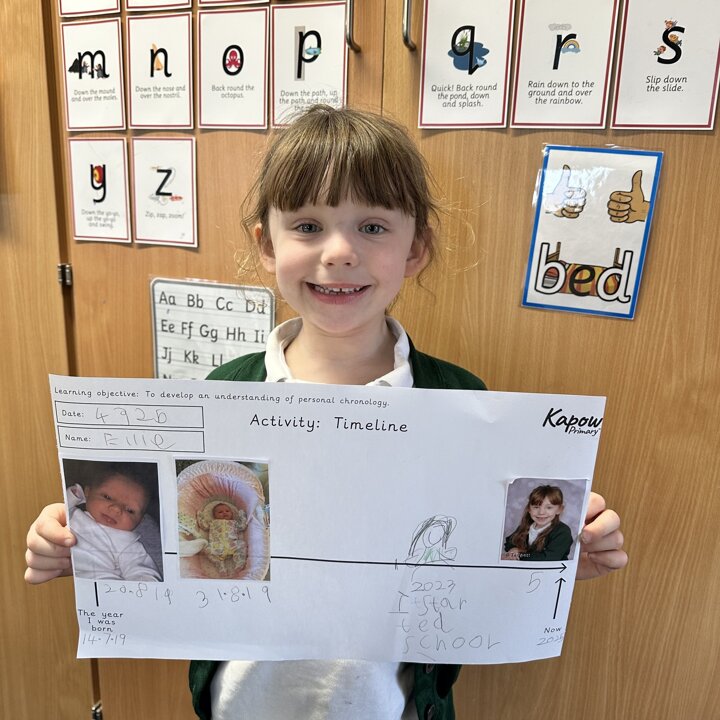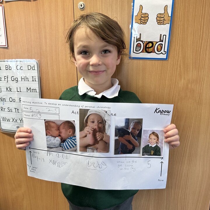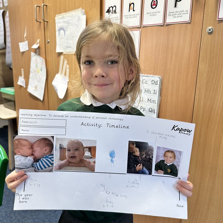 Take a look at these photos which show the children firstly ordering events of the day and then placing photos of themselves on a timeline. There has been a lot of great discussion and learning happening!