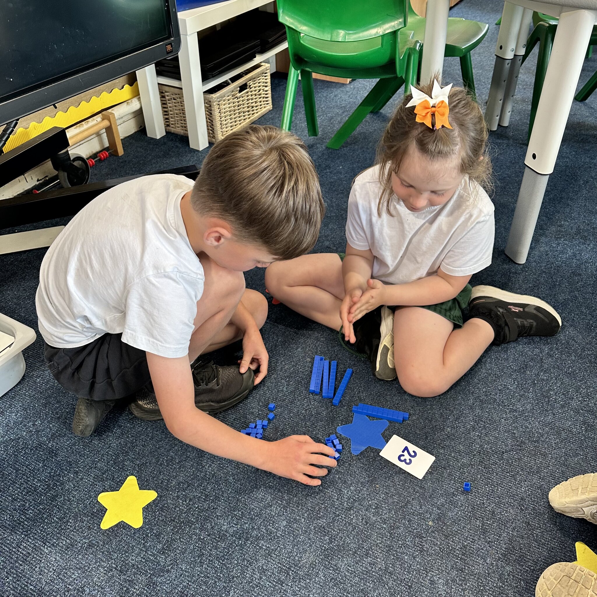 Exploring numbers adding and taking ten, looking at place value an deepening our understanding through lots of maths chat and team work…