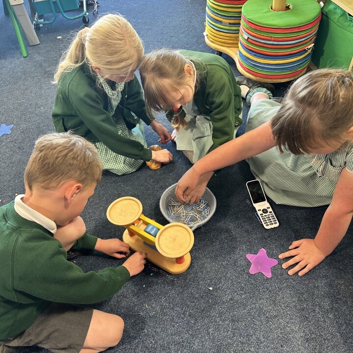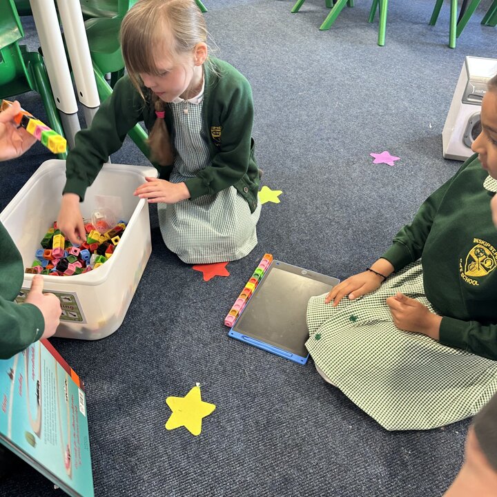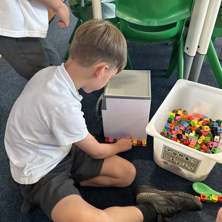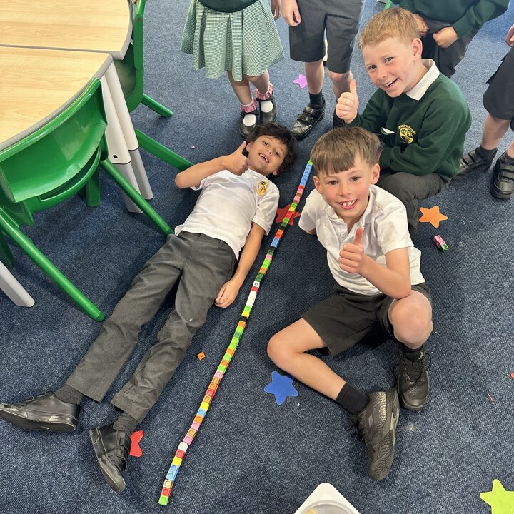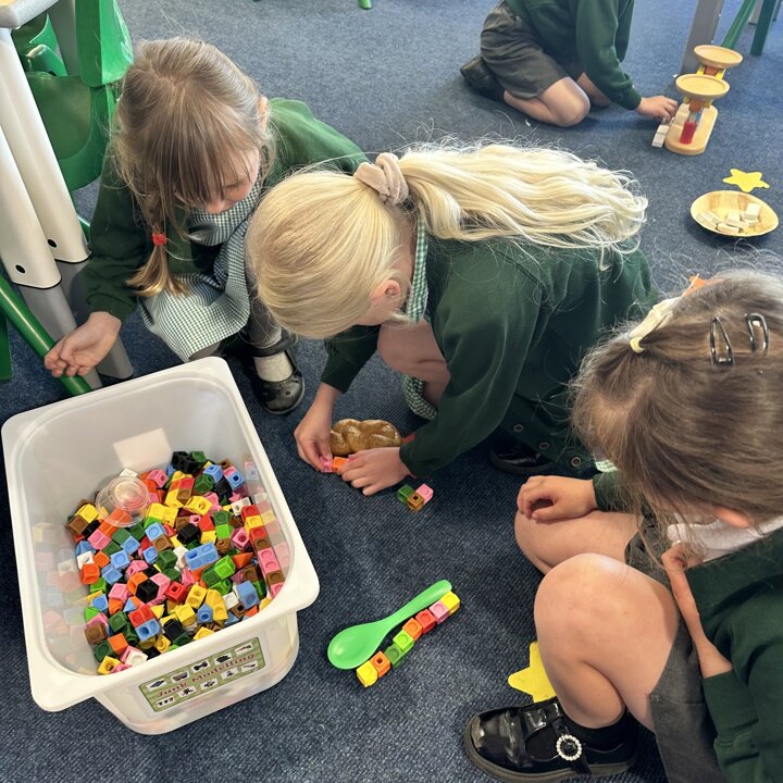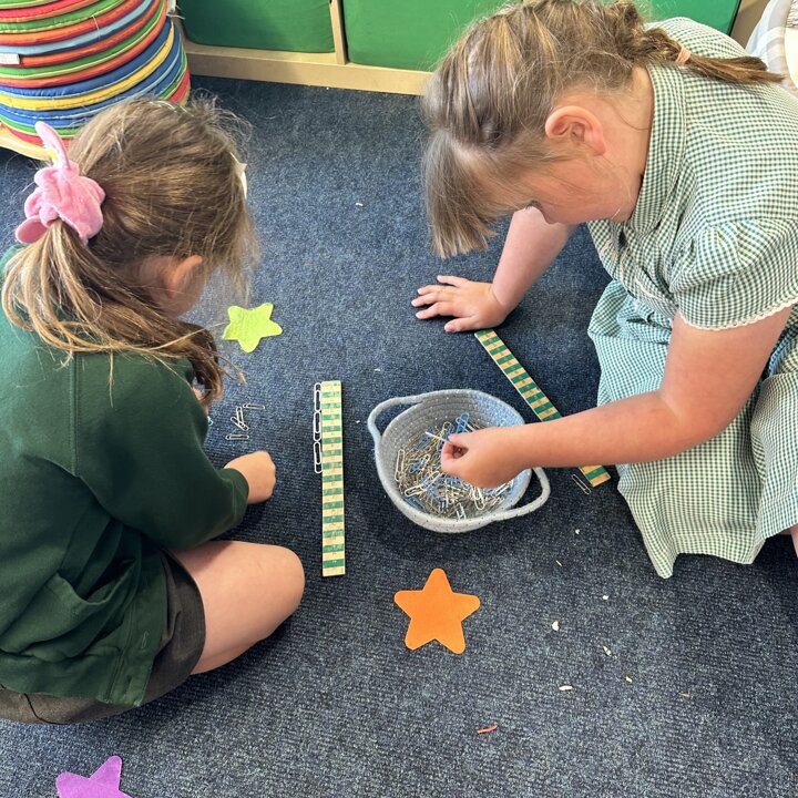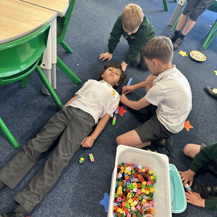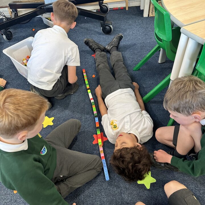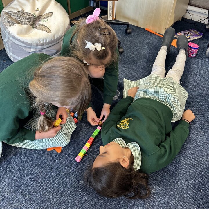 The children have been exploring measuring length and height with non standard measures. Lots of great predictions, estimating, counting, comparing and discussion in their learning.