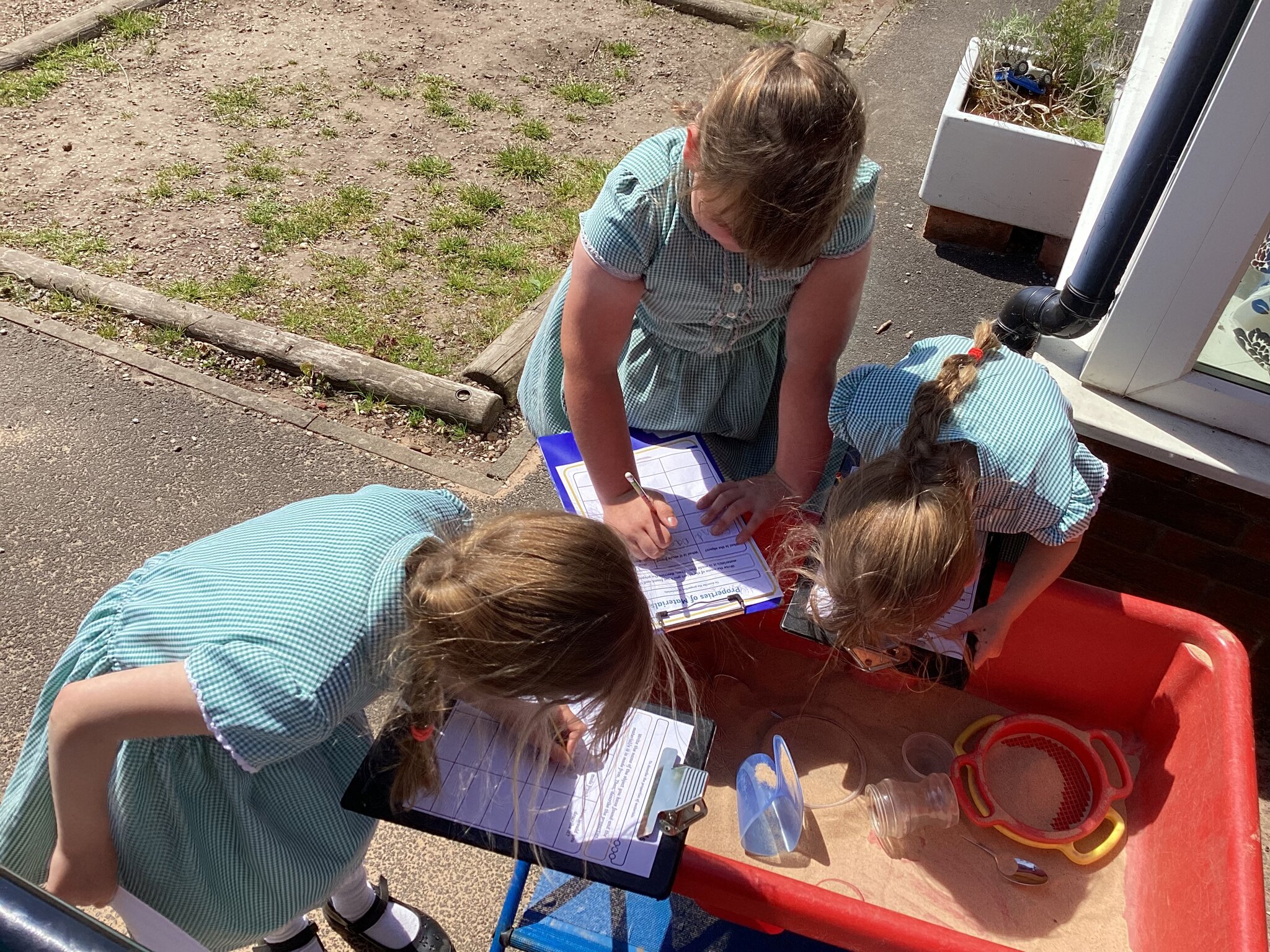 In our ongoing science topic about materials the children have been investigating the properties of the materials. After looking at objects in our classroom they went exploring outside looking at what objects are made of, describing what the materials they are made of and questioning why they have been made out of that material.