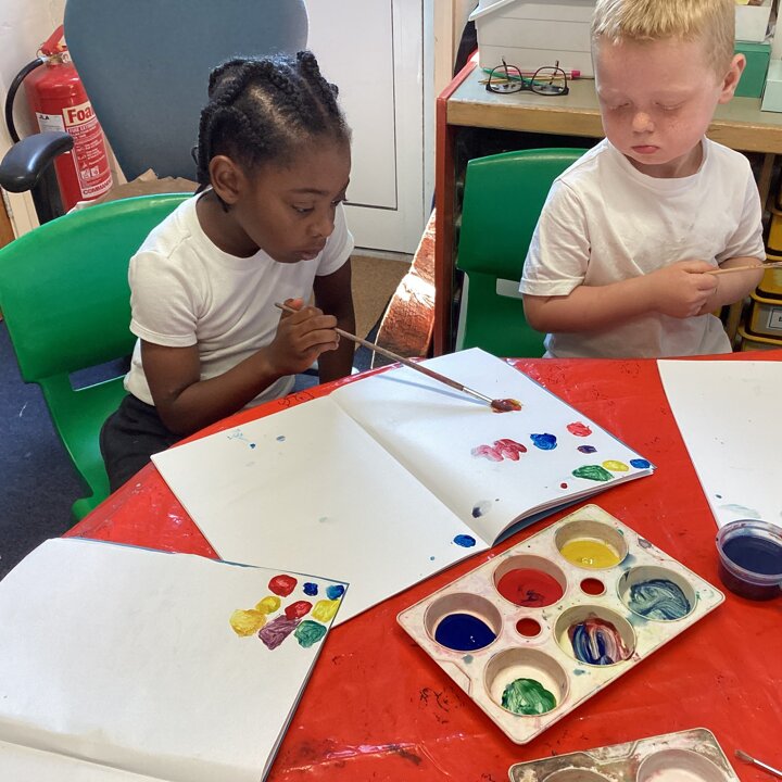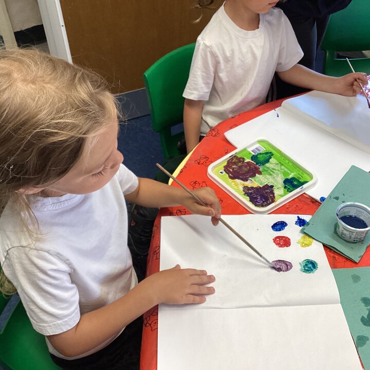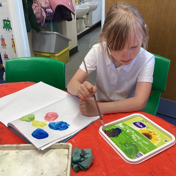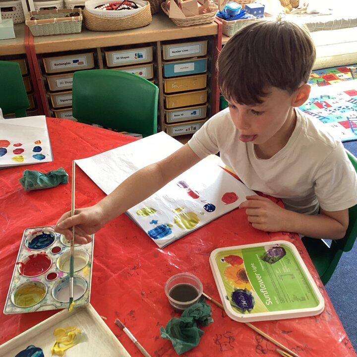 19 May 2025 Penny Kemp Lower School (KS1) The children investigated how to mix primary colours to make secondary ones …