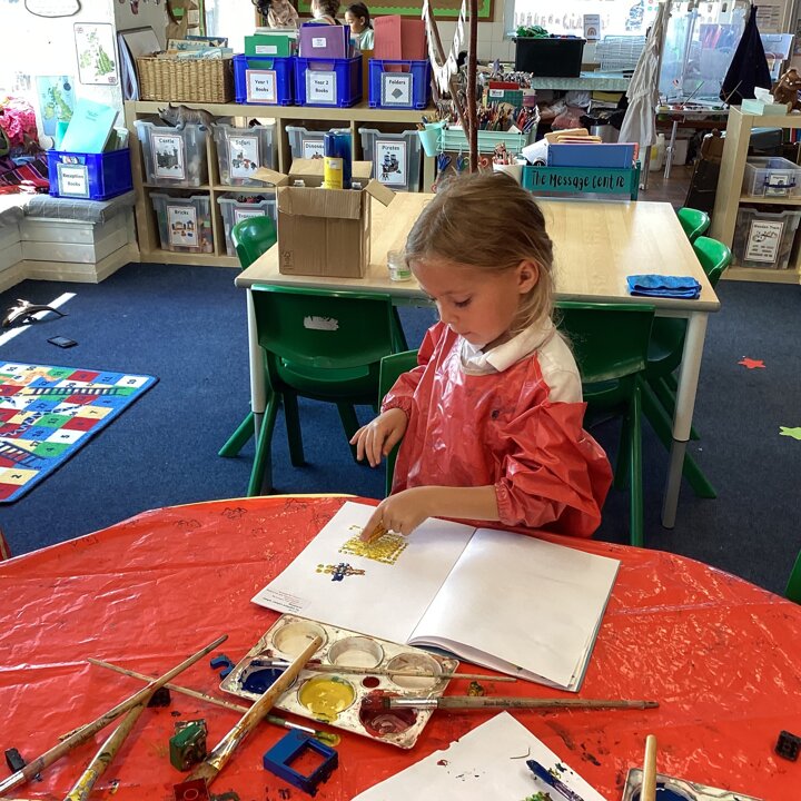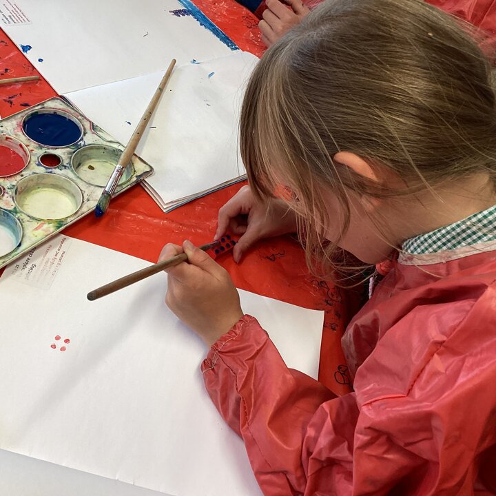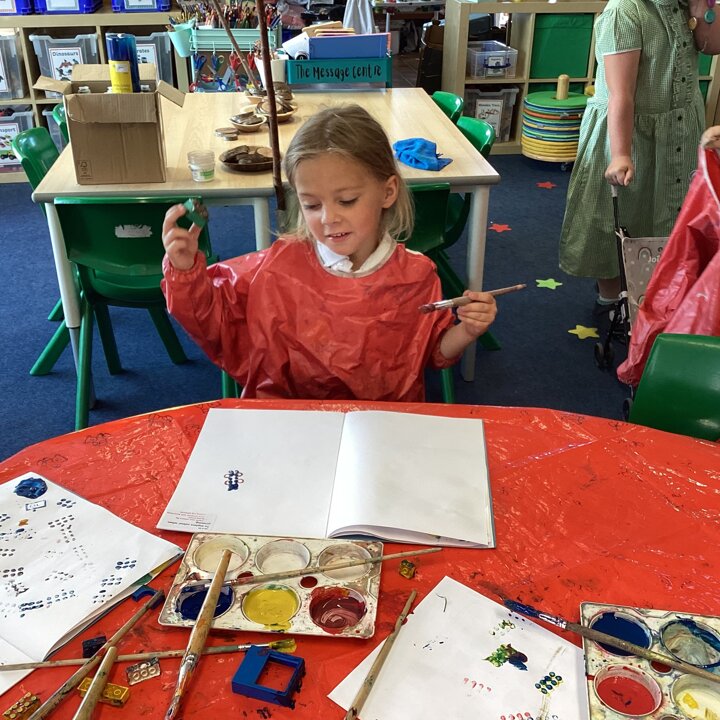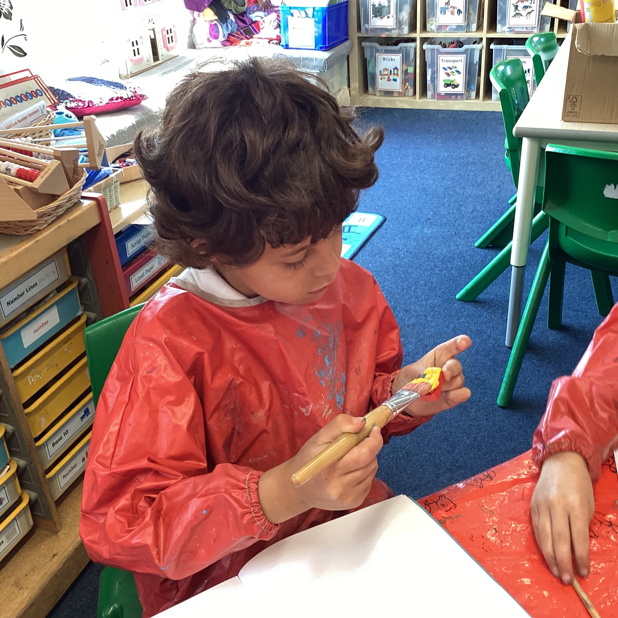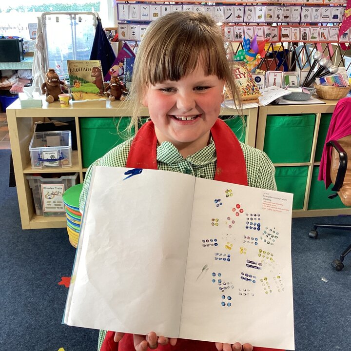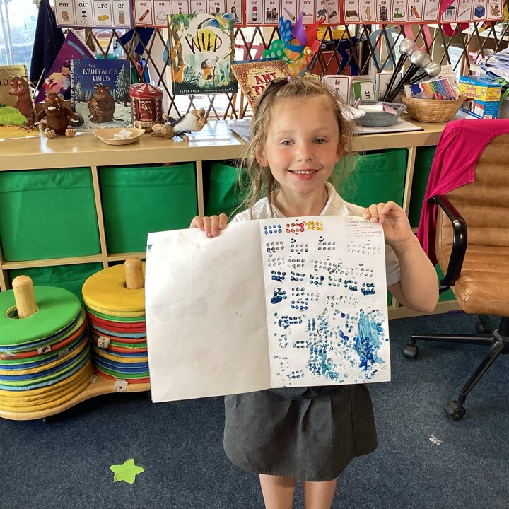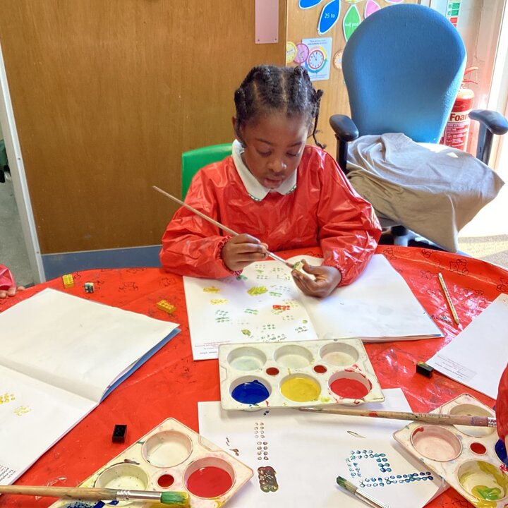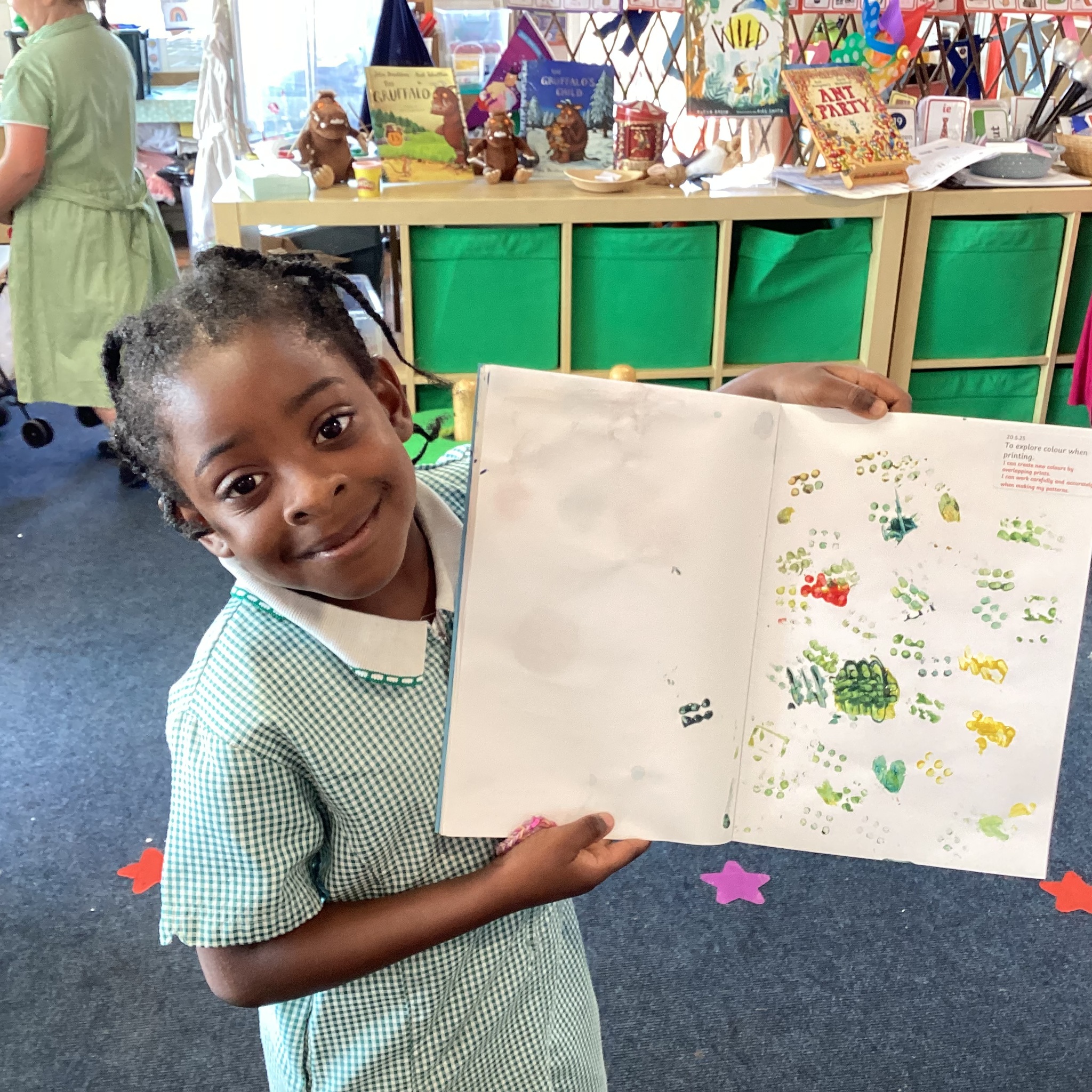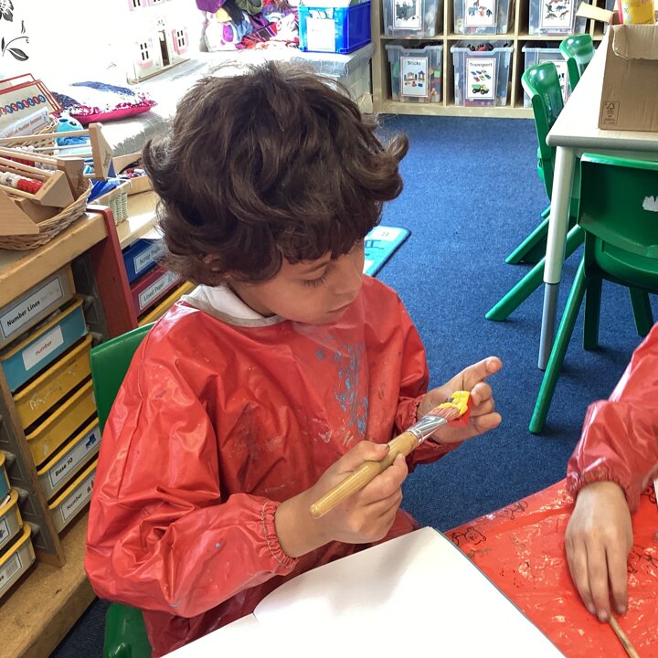 Using Lego bricks to create prints the children experiments creating patterns, combining colours and creating pictures. They created the new colours by overlapping prints and aimed to work carefully and accurately to create their prints.