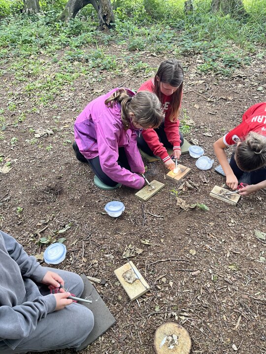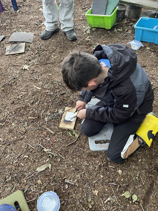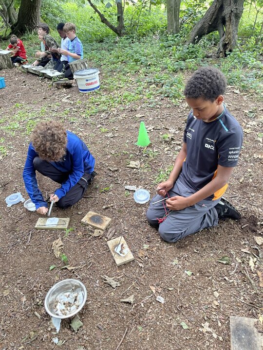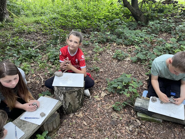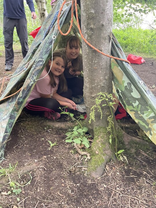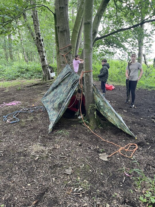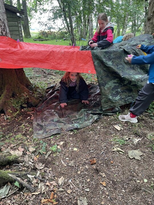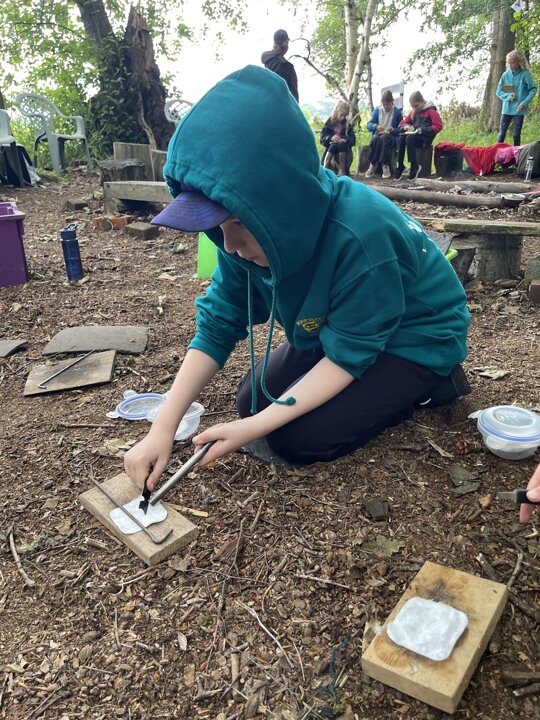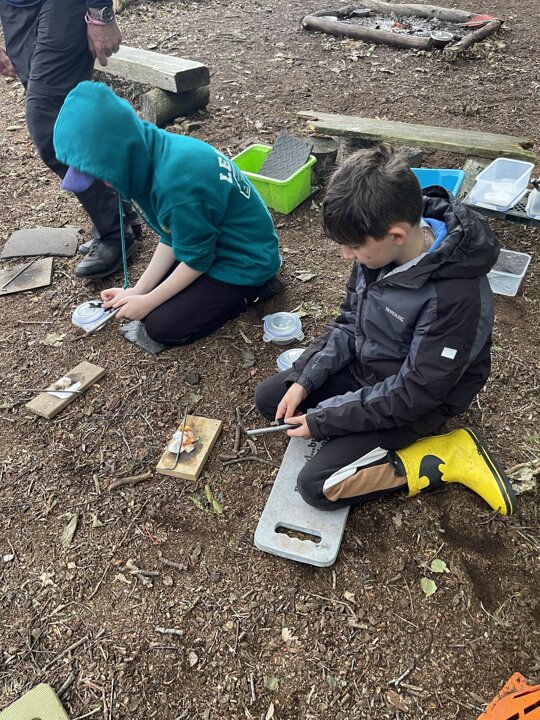 A wonderful time was had by all on our visit to the woods at Humblescough Farm. The children enjoyed working in teams to make waterproof dens, cooked S’Mores on the fire, made Japanese art, played hide and seek, designed clay models and learnt how to use flint and steel to make fires!