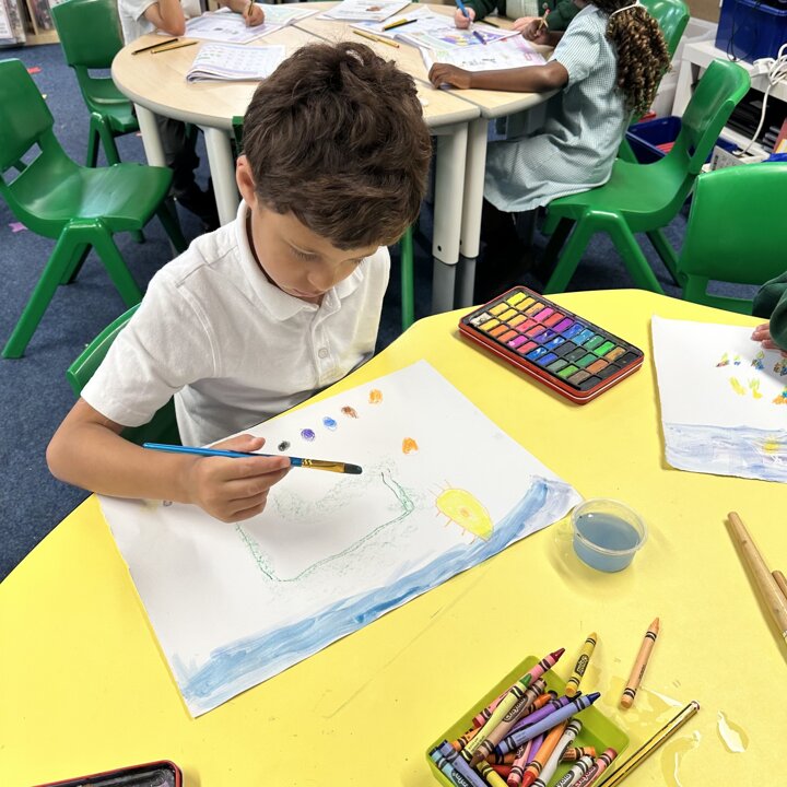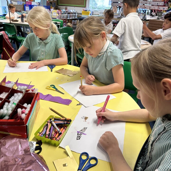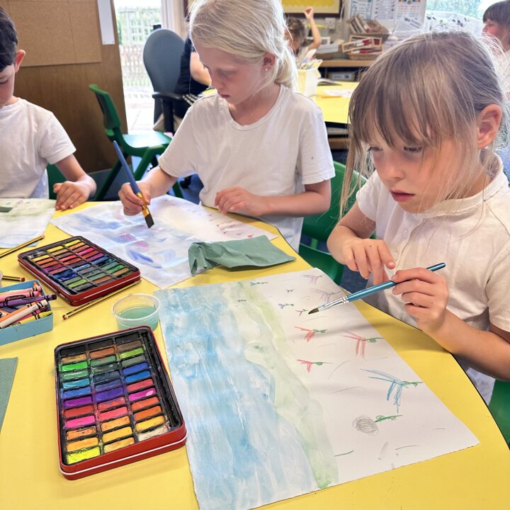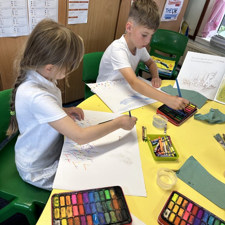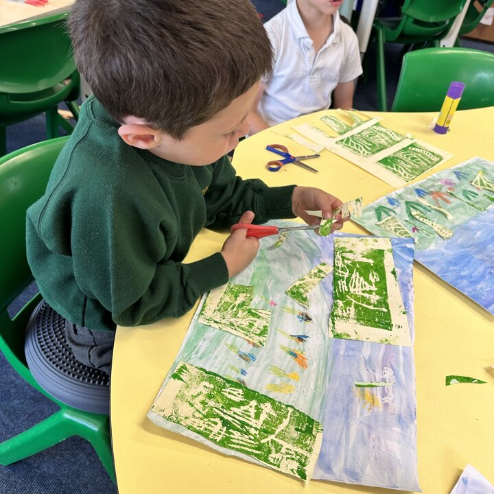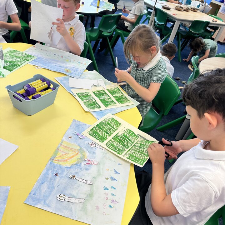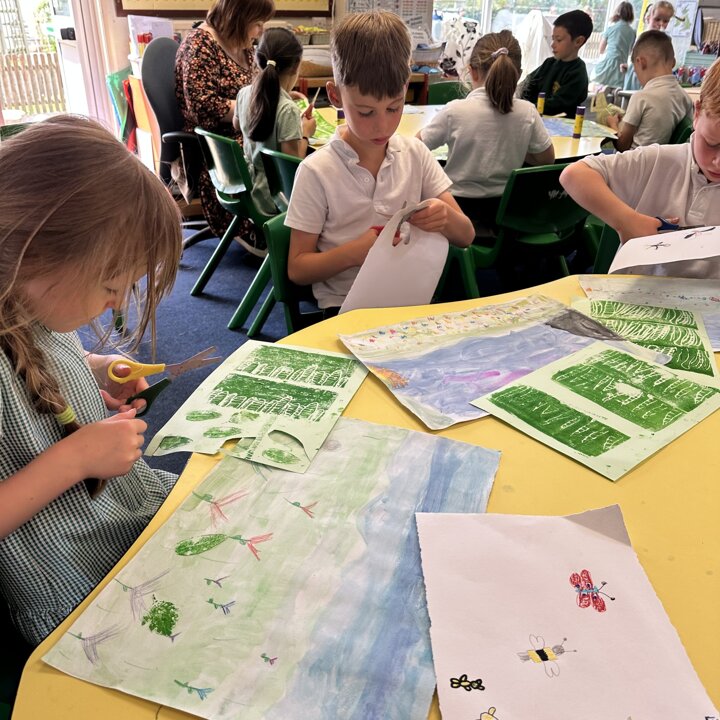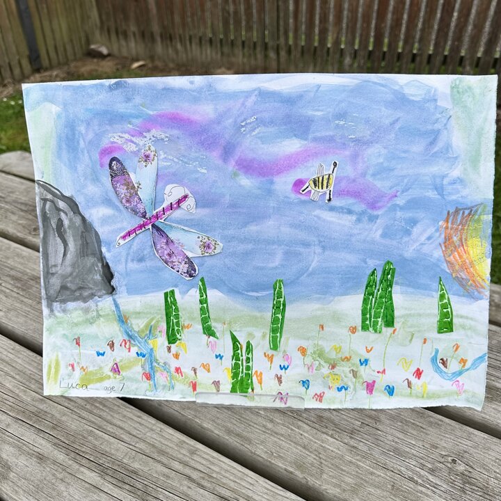We have been busy drawing, printing and painting to create a collage of a scene from a summer meadow to enter into an art competition. The competition is open until the 8th September so if you’d like to create another picture at home over the holidays with friends please do, you can find the competition details here John Burningham Website.