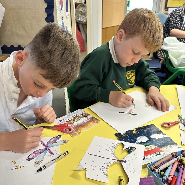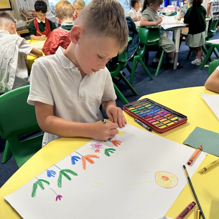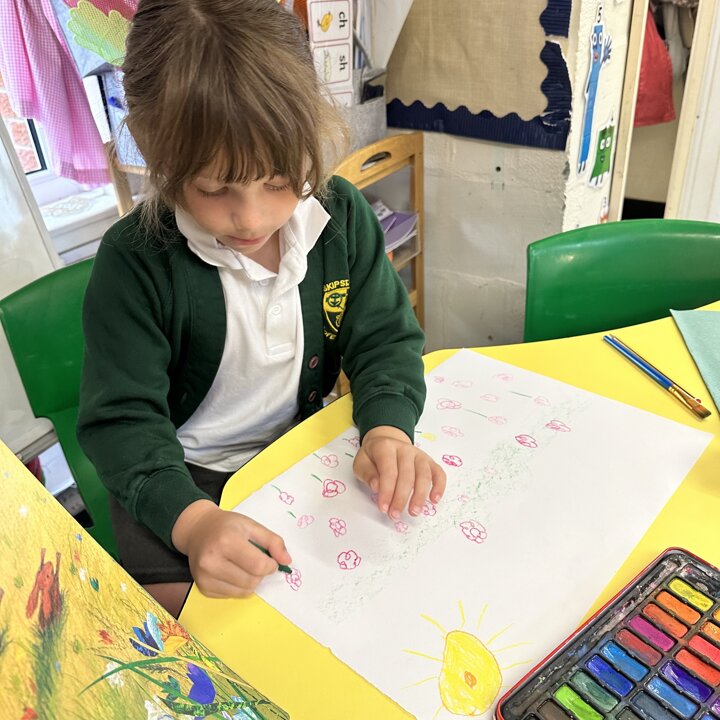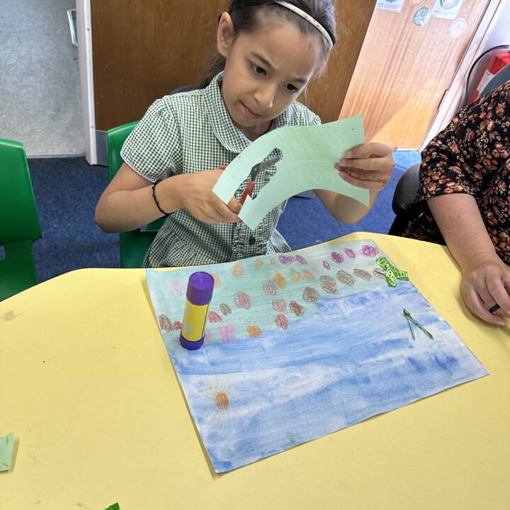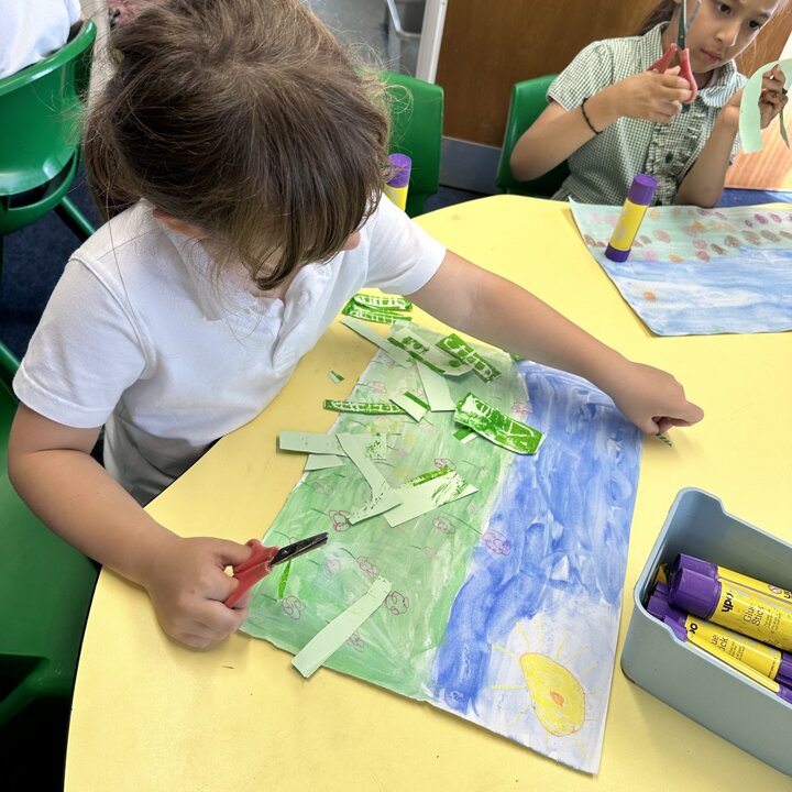We looked at videos created by Petr Horaceck where he shows us how he created his collage of a summer meadow and read a selection of Petr’s and John Burningham’s picture books. We also looked at some photos of wild flowers that are growing in Mrs Kemp’s friend’s garden for inspiration.