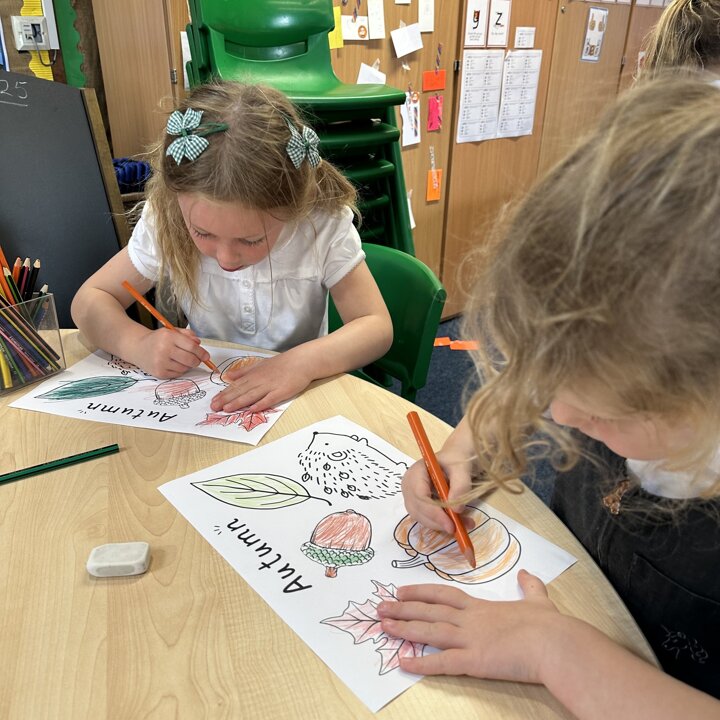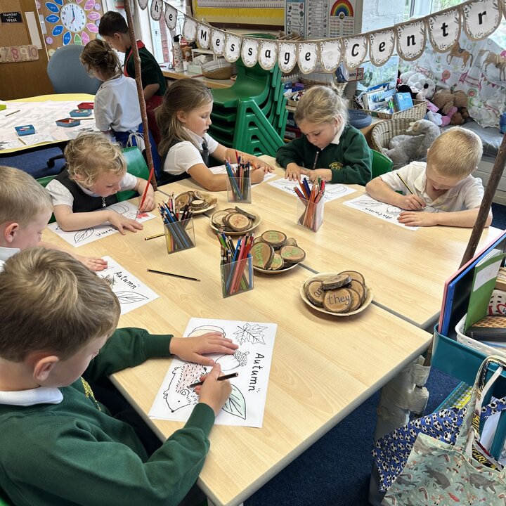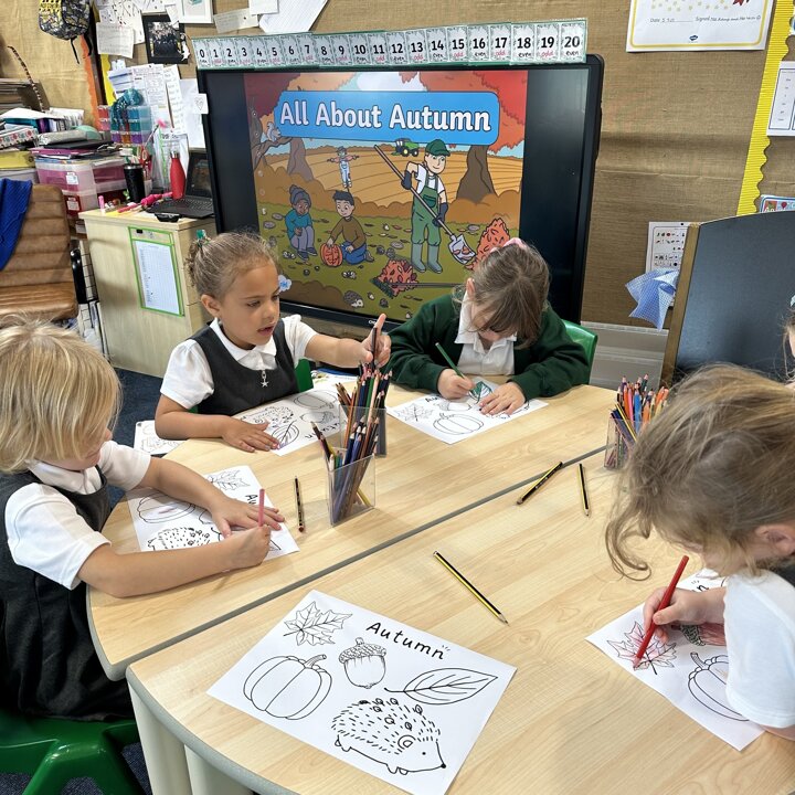 Following our morning walk spotting signs of approaching autumn, we discussed some of the animals we notice more, out in nature during the autumn. The children had lots of ideas and cleverly knew that hedgehogs are nocturnal so we shouldn’t see them out in the day. We learnt how animals store food in autumn in preparation for the cold months of winter.