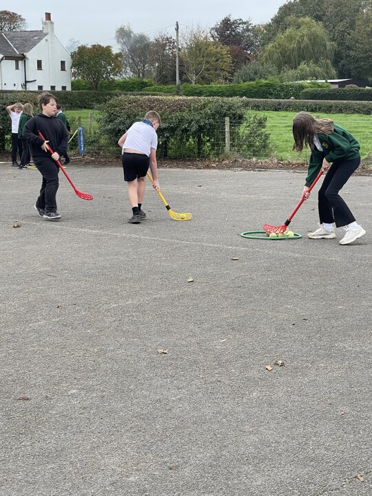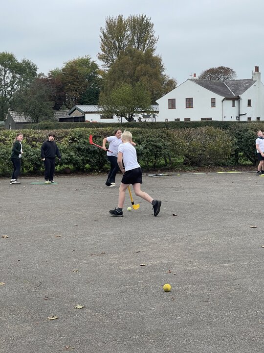 The class have been learning the skills of hockey for the last 5 weeks. They have made huge progress and have begun to play small hockey games now where they have shown their skills of dribbling, tackling and shooting the ball into the goal. Well done Year 5/6!