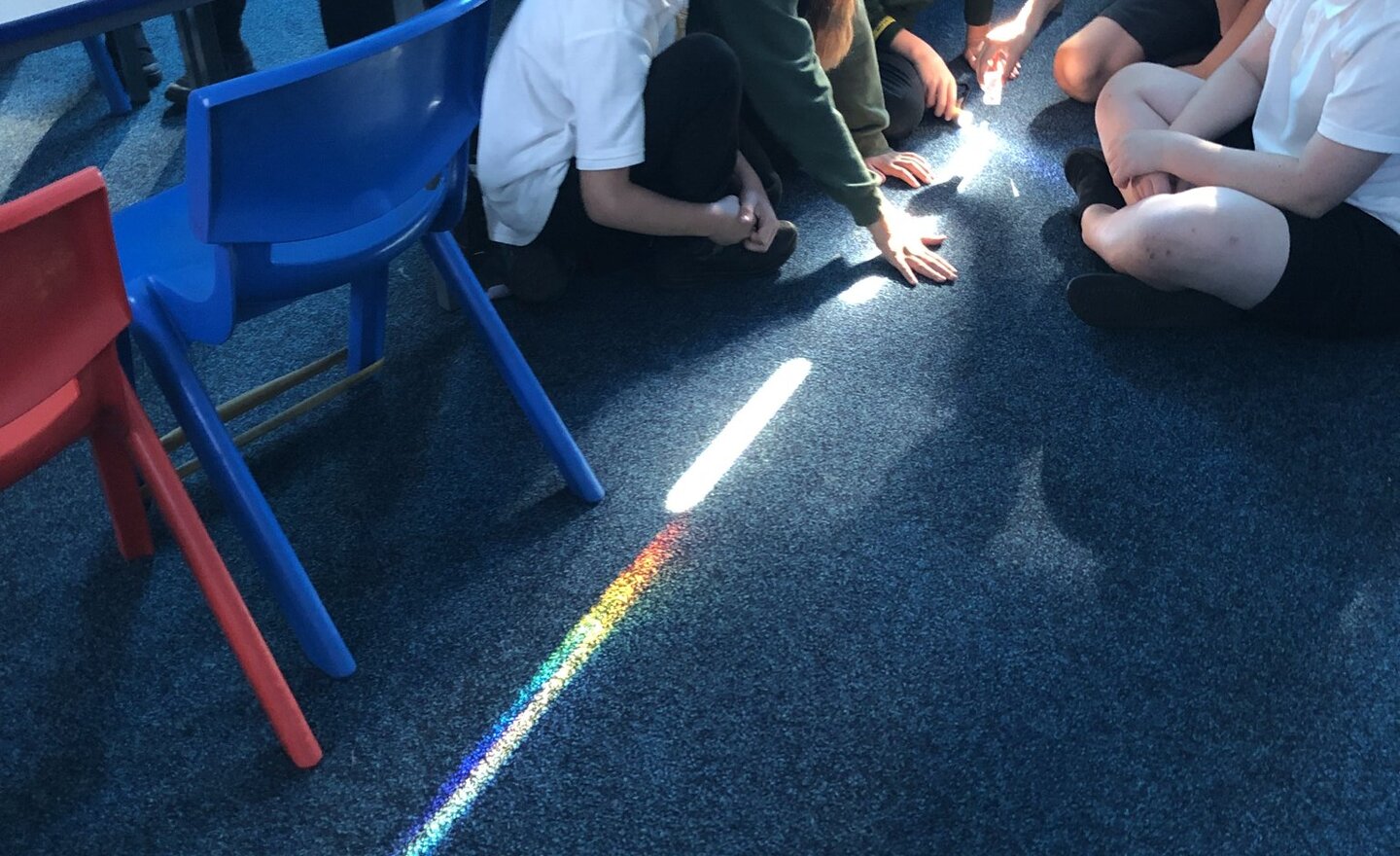 Today’s science learning was all about the visible spectrum and how light is made up of all the colours of the rainbow!