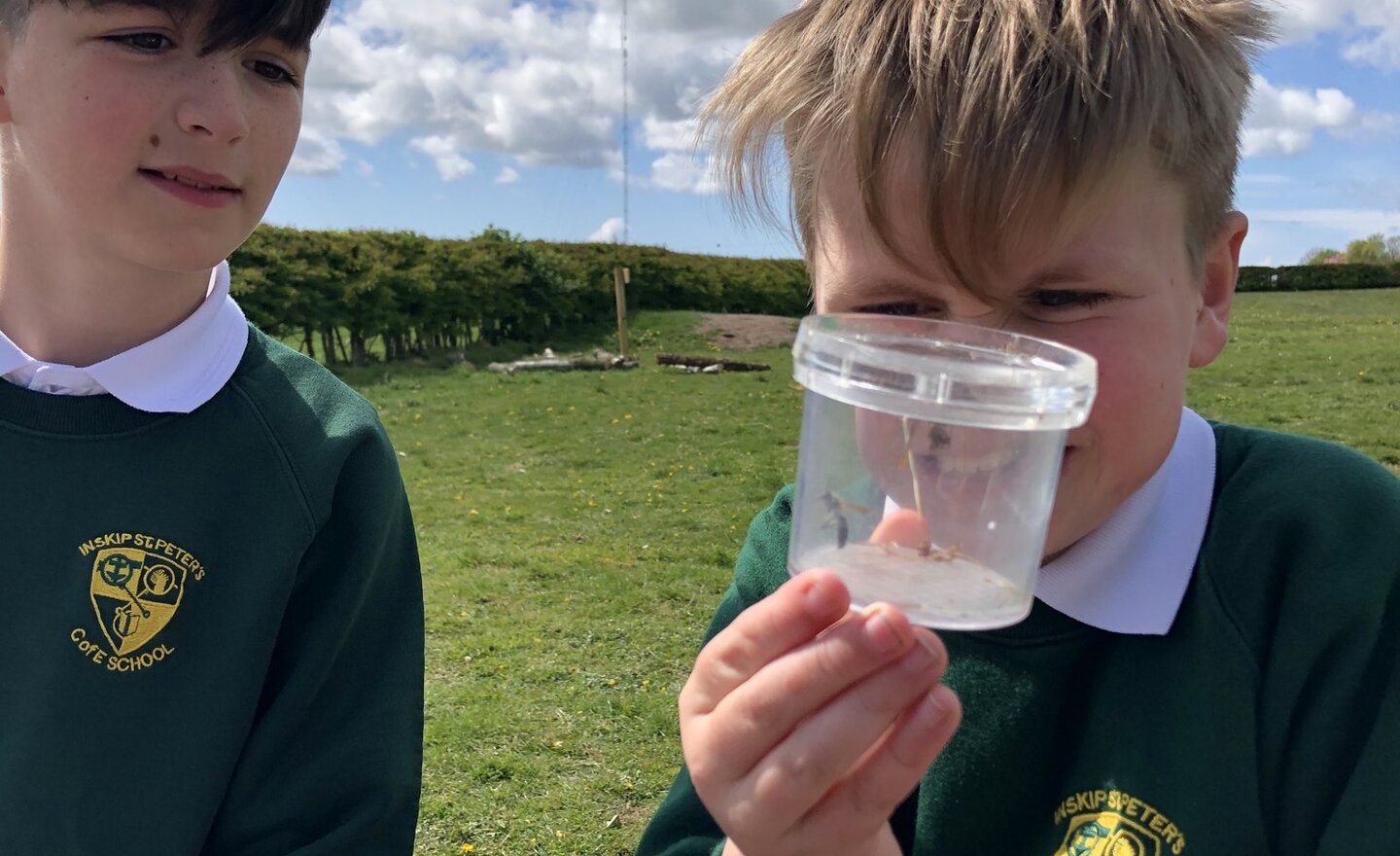 The children worked in groups of three to investigate a particular micro-habitat and used a pocket ID book to work out what sort of invertebrate they had found. There were lots of flies and bees out…