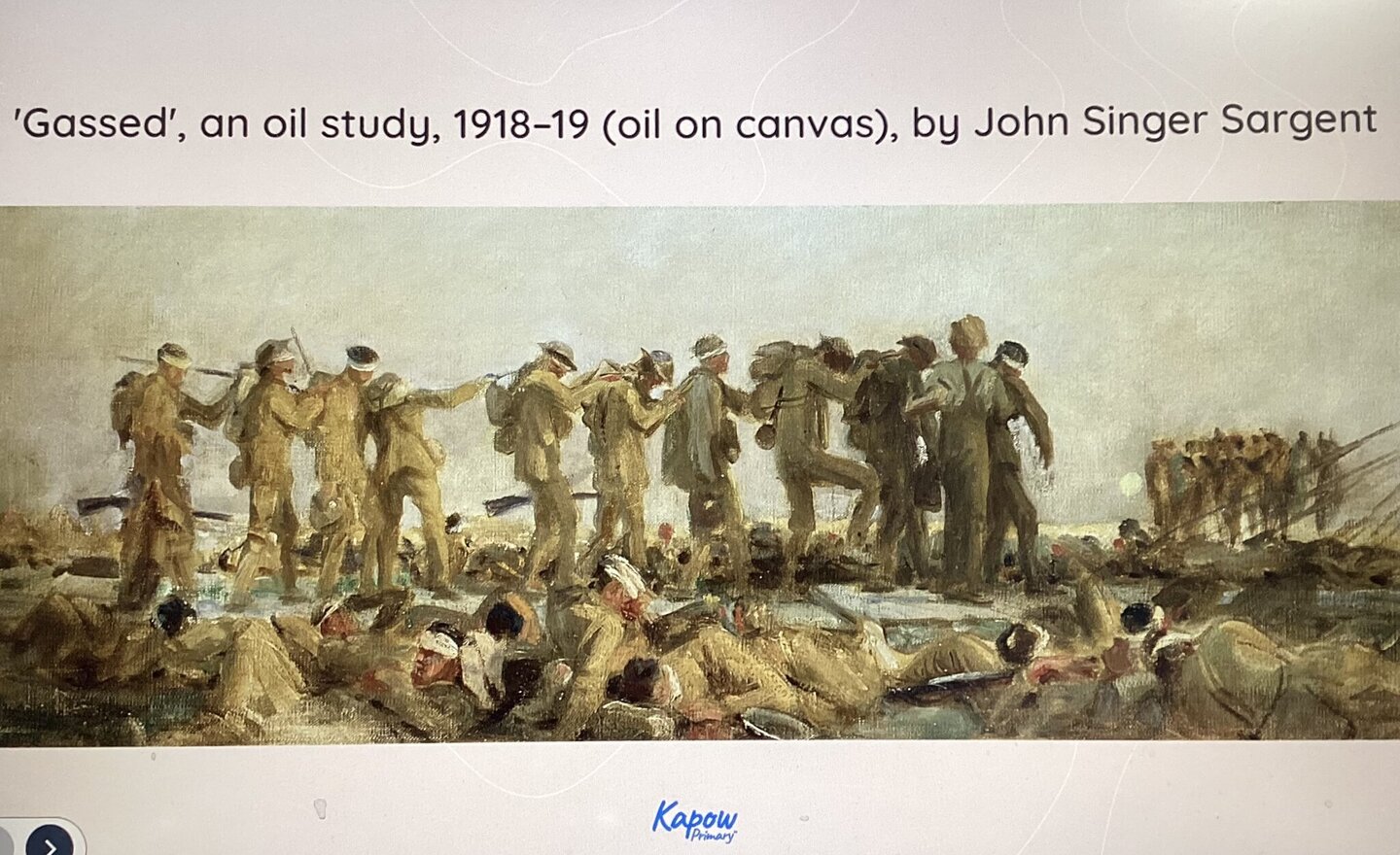 Today, the class looked carefully at the oil painting, Gassed by John Singer Sargent. We discussed what was going on, the story behind the picture and the feelings of the soldiers. The children spent time reproducing the painting in pencil in their sketch pads, looking carefully at the shapes and…