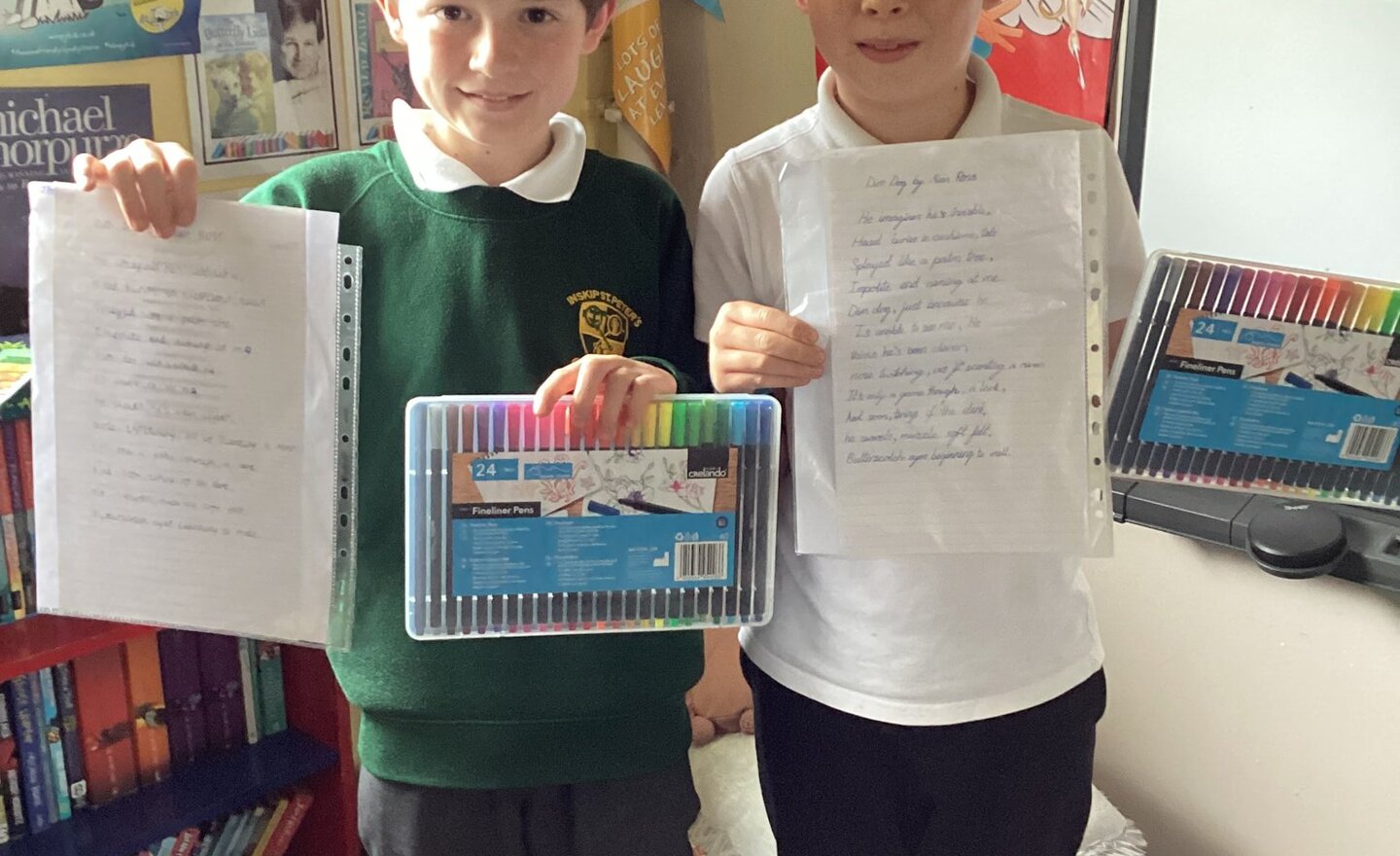 Well done to Daniel and Tommy who won the Y5/6 Handwriting Competition this week! It was a very difficult decision as there were lots of pieces of excellent handwriting but these two just had to be the winners with their beautiful joined up writing and consistent letter formations.
