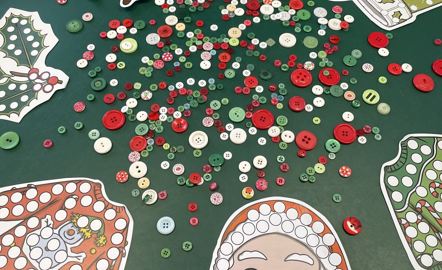In this activity the children chose buttons to place on the Christmas pictures. Picking up the buttons helps improve their fine motor skills helping build muscles ready for holding pencils and writing. As the children chose their buttons I asked them lots of questions prompting learning and we…