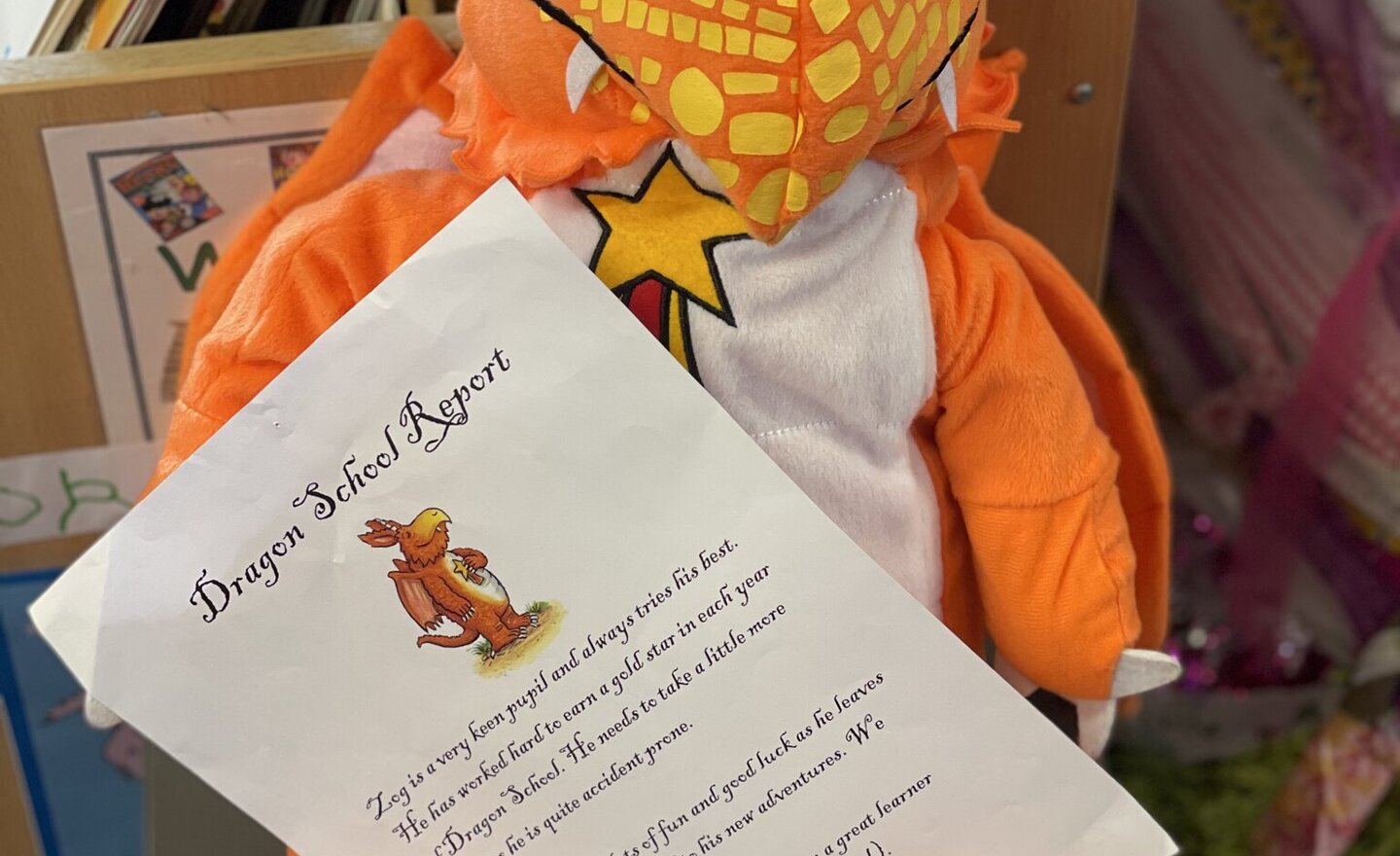 This week we had a surprise visitor, it was Zog the dragon! He found him in our classroom with a copy of his school report from Madam Dragon.