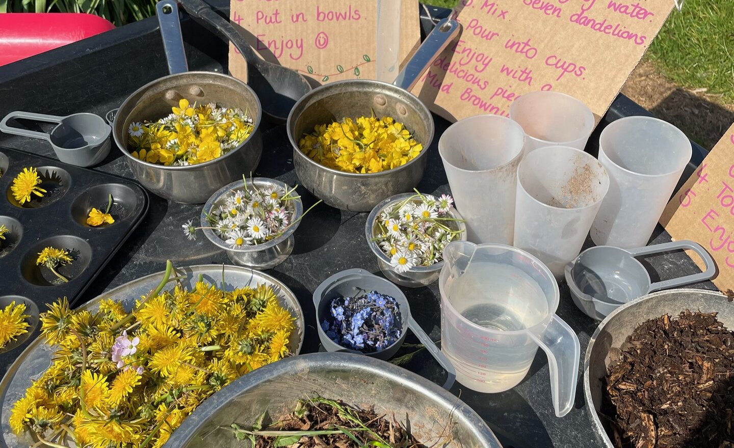 The children have been busy playing and learning in our Nature Kitchen. They collected their ingredients from the field before and followed the recipes I had created for them then made up their own.