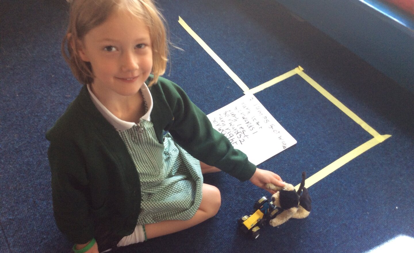 To practise their learning today they wrote instructions telling the teddies how to move along the track to reach the tractors…