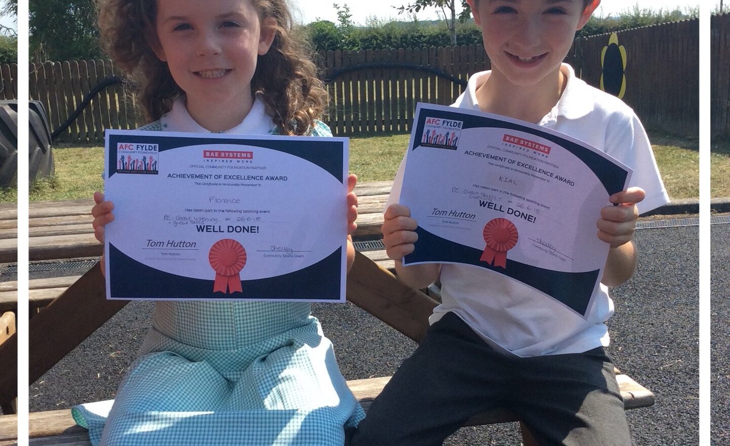 Our great sports coach from AFC Fylde, Shelley, awarded two certificates for great learning in PE this week.