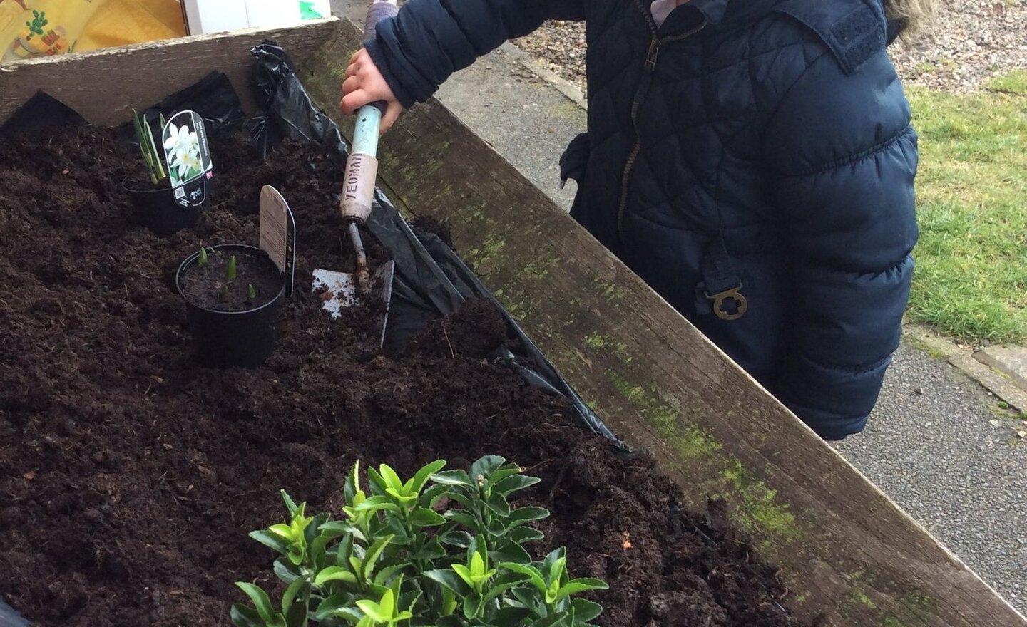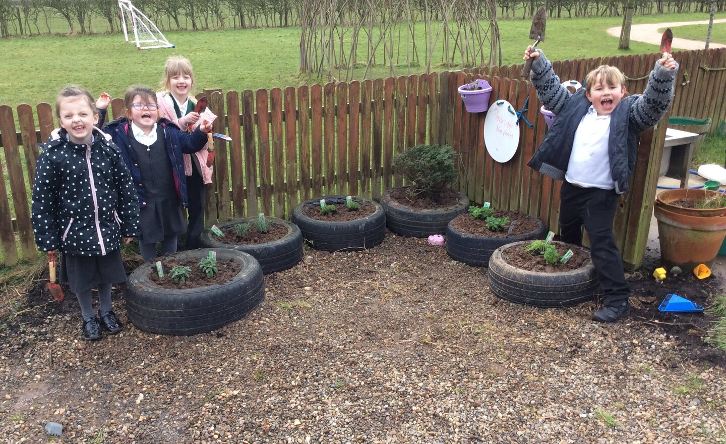 Reception had a good tidy up time in our garden area this morning. They cleared out the weeds and turned over the soil in our tyres that we had grown potatoes and wild flowers in last year. Then they planted some bulbs and shrubs in the wooden trough planters. They learnt new things and showed…