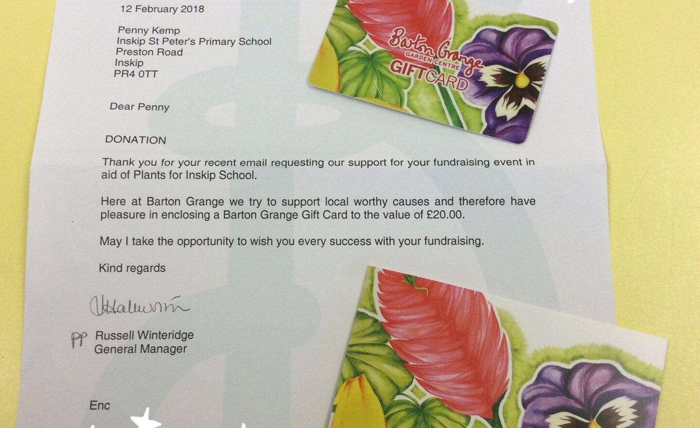 Thank you very much to Barton Grange who have very kindly given us a voucher for £20 with which we will buy plants and seeds for our science learning this term.