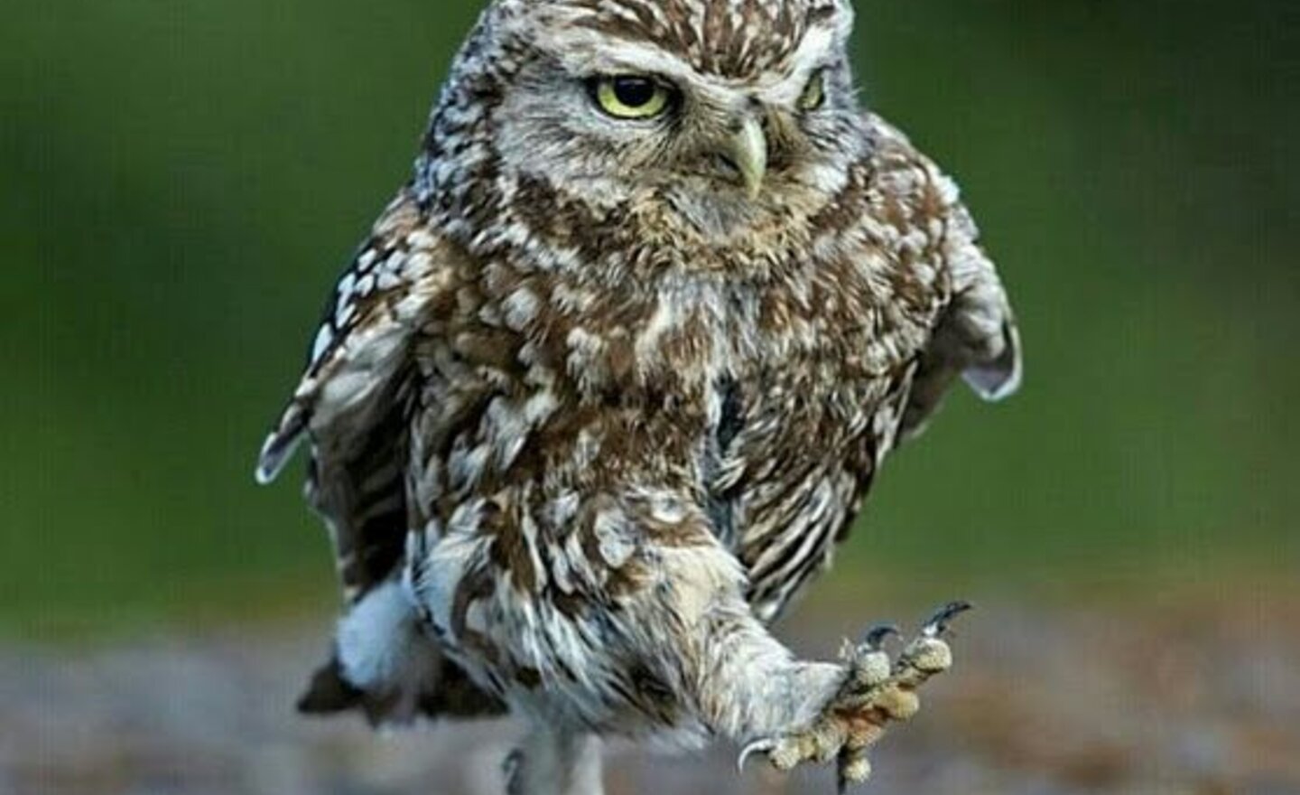 The Little Owl bobs its head up and down when it is alarmed (frightened).