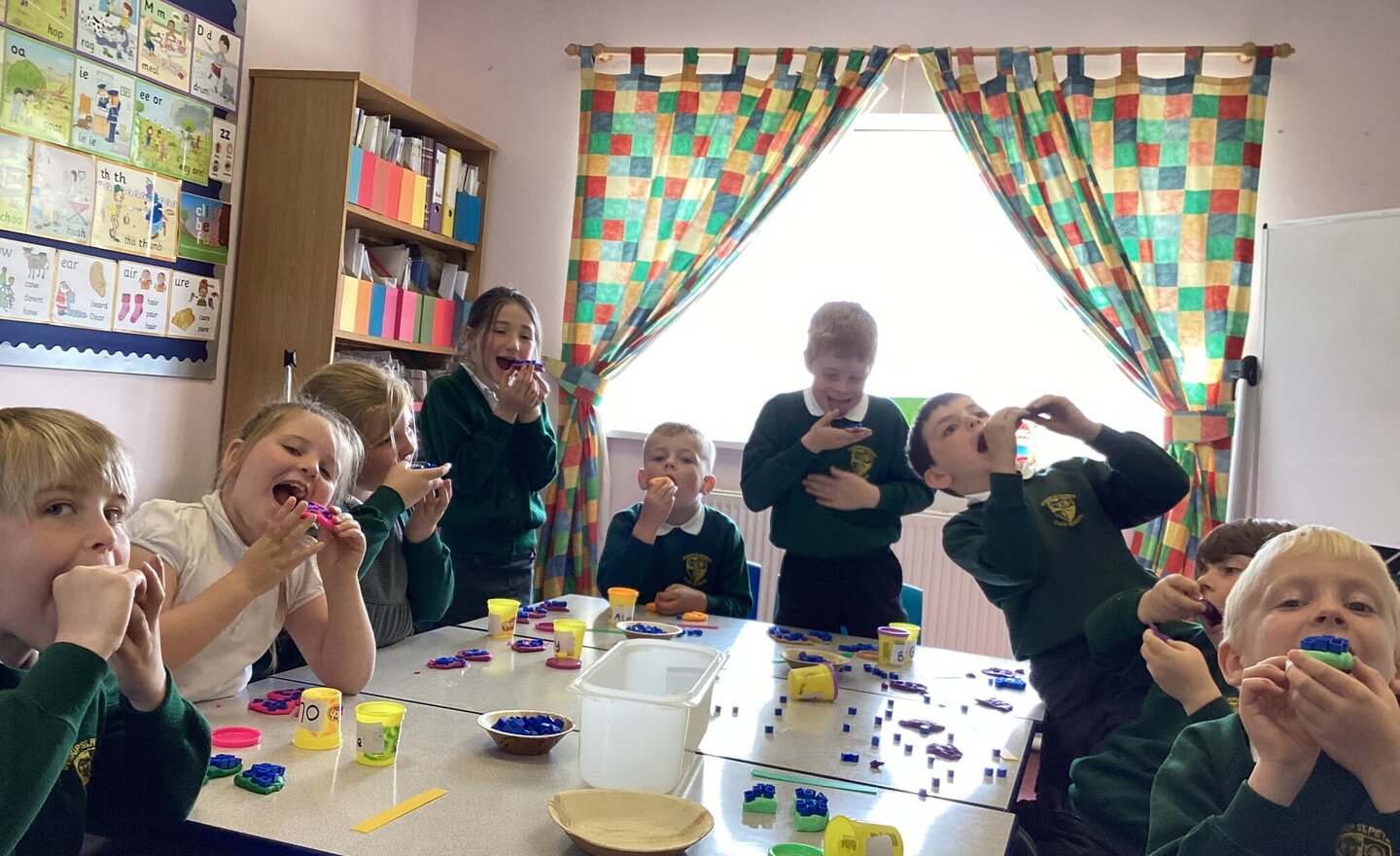 After choosing their very own colour pot, Lower School created new little Class Dojo monsters! They accessorised with the little eyes, hands, feet before rolling phonics dice to name them!