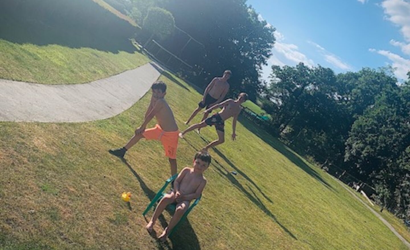 Today’s stars of the blog are Leo and his brothers Ben, Sam and Josh looking happy in the sun together when they met for the first time on Monday after three months of not all being able to see each other.