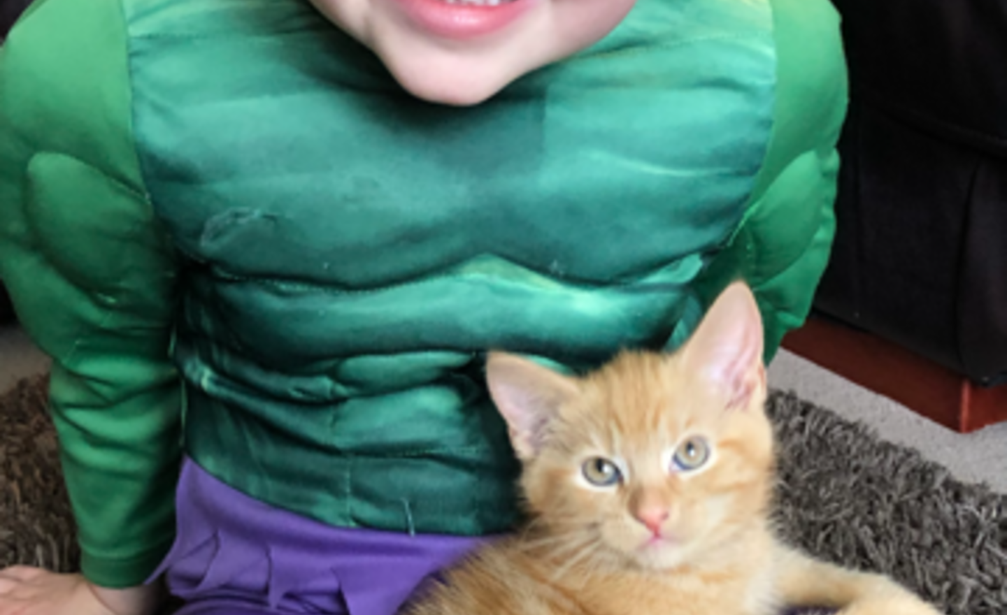 Today's star of the blog is Nathaniel dressed as the Hulk and his adorable kitten called Melman sat on his knee! Thank you for this fabulous photo Nathaniel it will make everyone start their day with a smile.