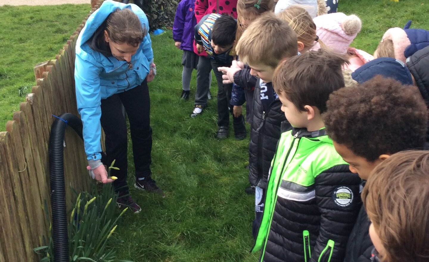 The children discovered daffodils blooming, emerging leaves on the willow tunnel and lovely pink blossom. Take a look…