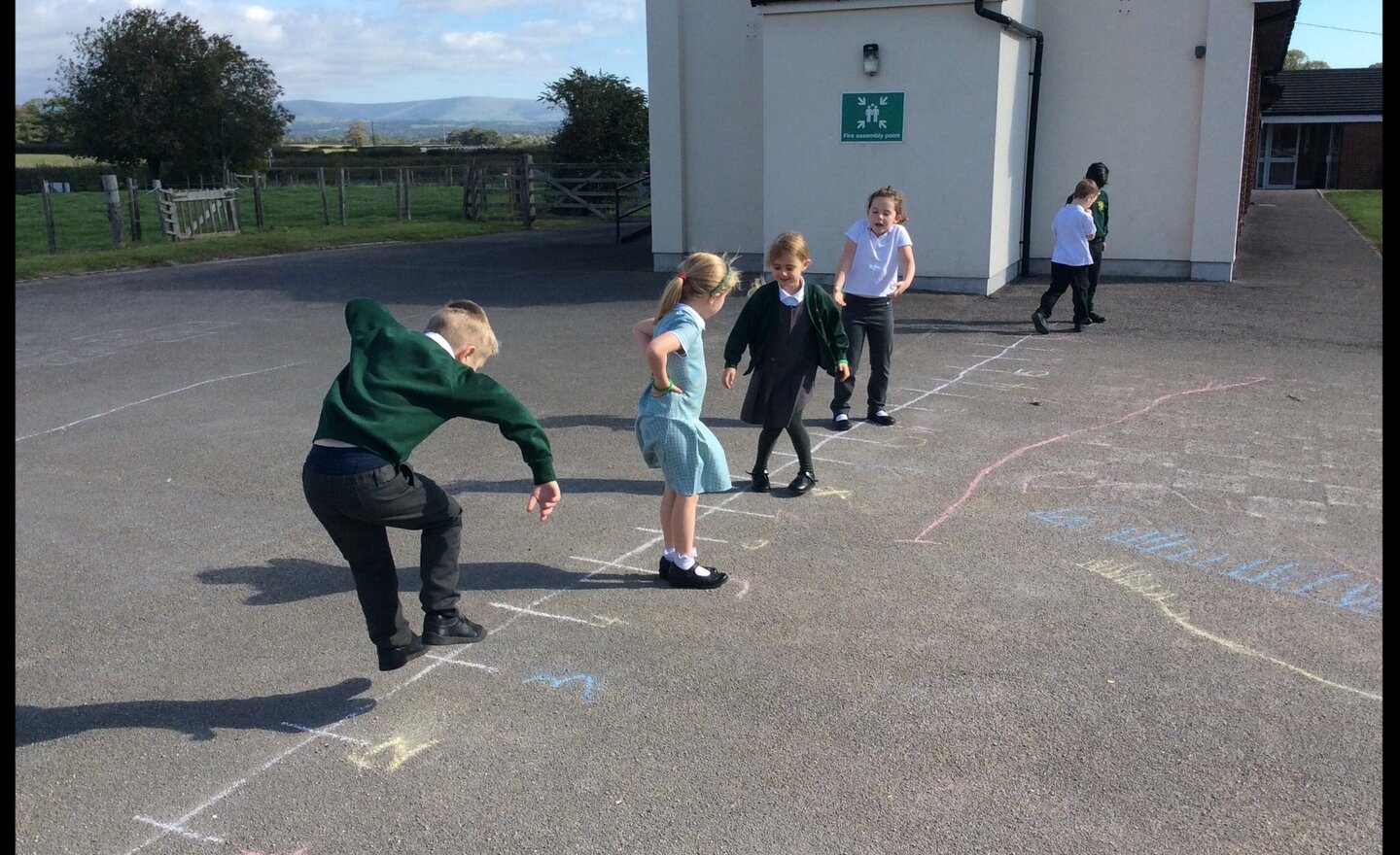 Taking advantage of the sunny weather we had a maths lesson outdoors this morning. Reception children were busy counting objects that couldn’t be moved whilst Year 1 children were busy jumping up and down number lines finding one more and one less. Year 2 children were counting in tens. We had fun…