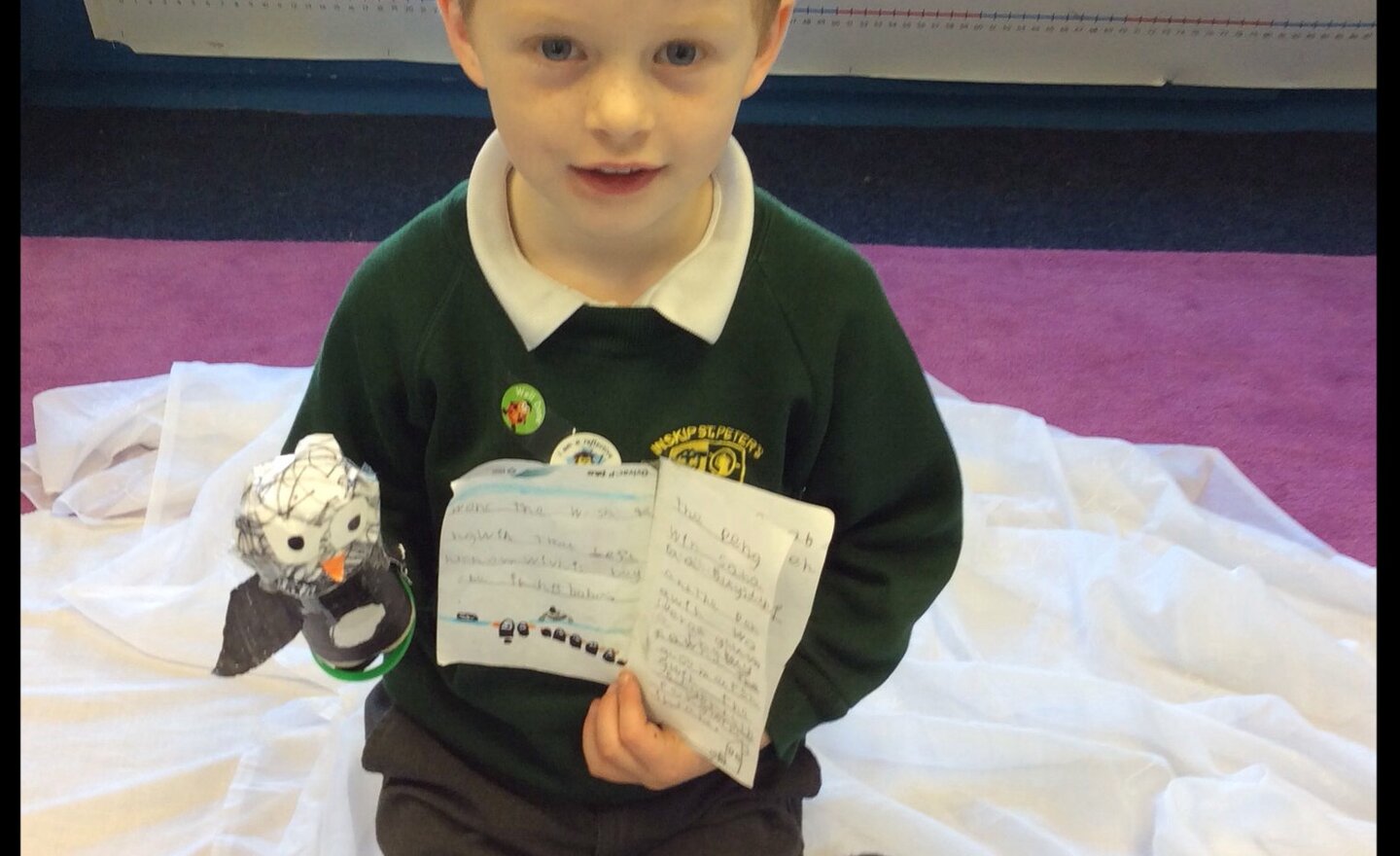 Ted is such a superstar, he is enjoying our topic so much that he made a penguin and wrote a penguin themed book at home last night. The first part of his book contained a story he wrote about a penguin and a boy then he had written a page of penguin facts at the end.