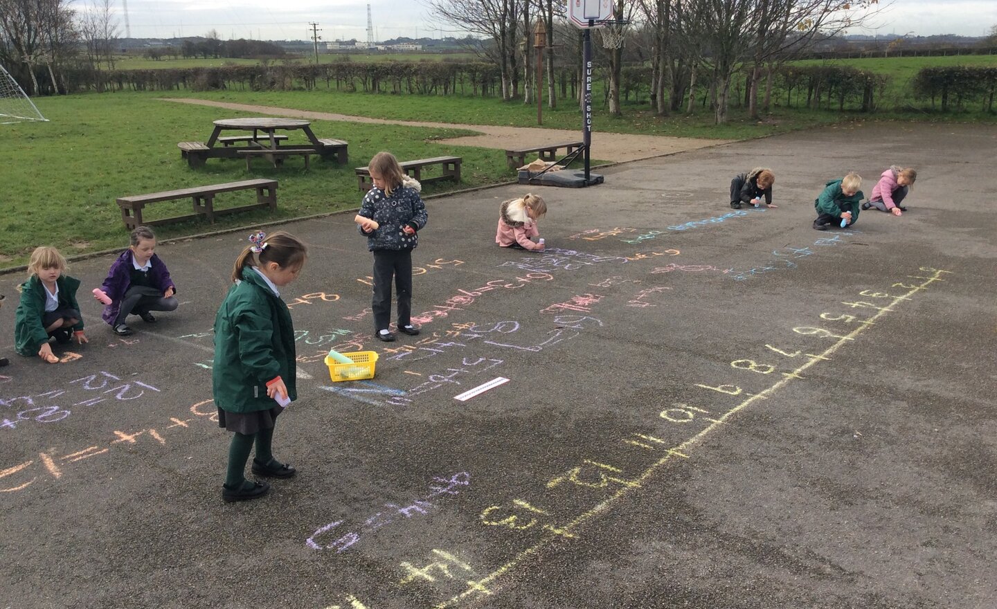 Great maths learning outdoors today with Year One children. They are learning how to add on and how to use a number line to add by jumping up the number line. Well done maths superstars!