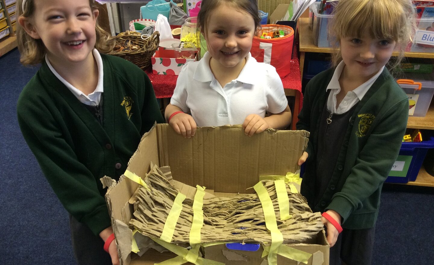Sian,Bethan and Claire have made a cosy, warm home for a hedgehog. They have placed it under the hedge for a lucky hedgehog to find! Great busy bee learners.