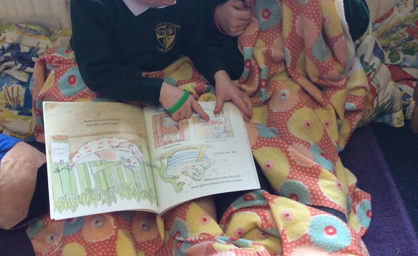 A magic moment of any teacher's day ... finding two boys engrossed in a good story snuggled up in the book corner! Super reading boys Ted and Isaac.