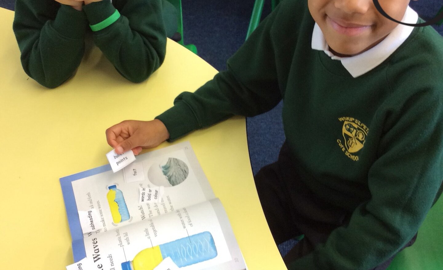 Year 1 and 2 children have been great co-operative 'Busy Bee' learners working in pairs to find features of non-fiction texts in books. They did this to help them see and learn how to set out information ready for when they write the facts they have learnt about hedgehogs.