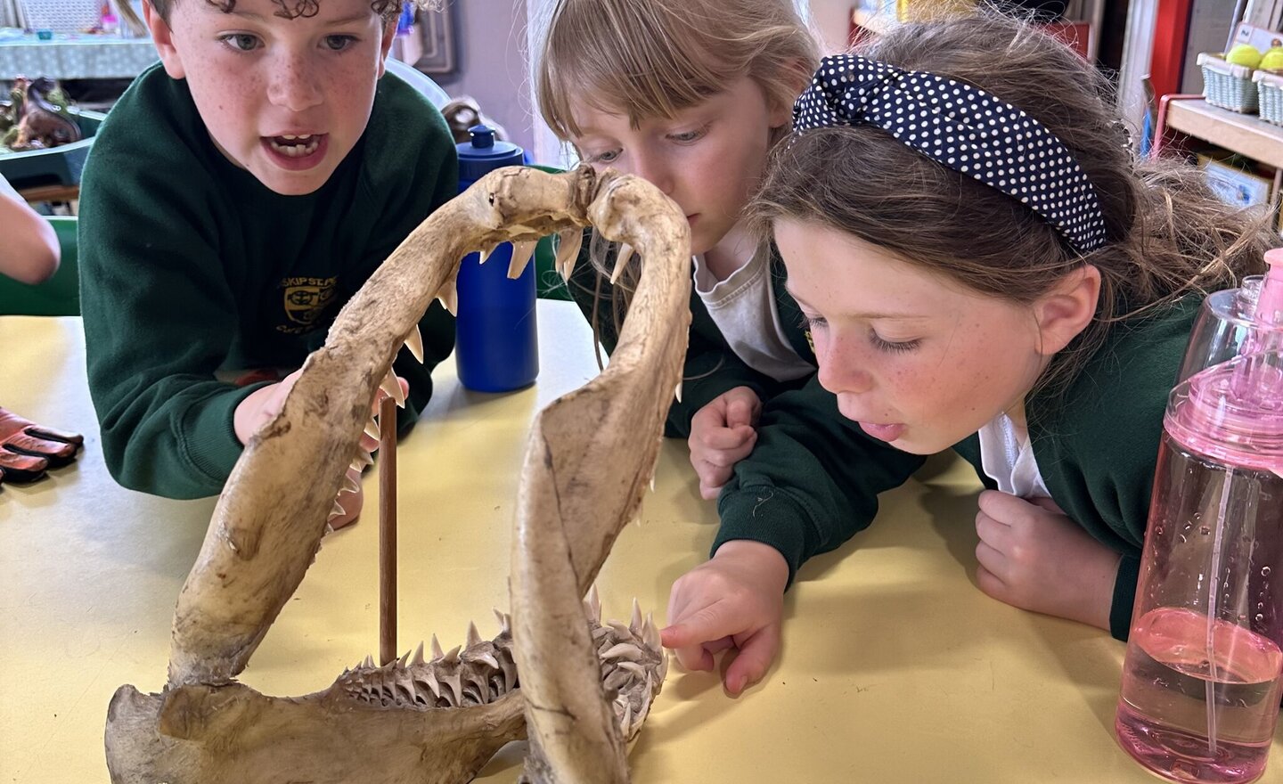 Mrs Maycock brought in her son’s collection of fossils and a Mako Shark’s jaw for us to have a close look at this week and we were all fascinated! We learnt that the shark has a four sets of teeth growing at any one time as they break easily!