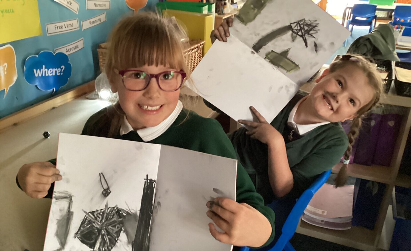Following last week's session of using charcoal for the first time, children continued to explore the medium further this week.