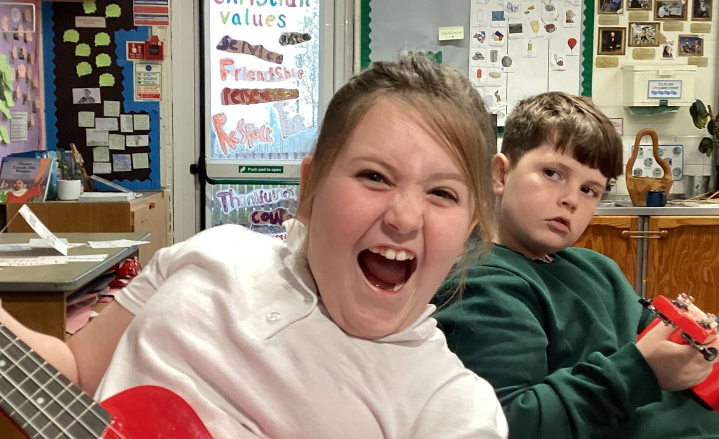 Middle School absolutely loved getting out the ukuleles. In our first lesson, we learnt the parts of the musical instrument, how to hold it, signals for our music lessons, the string names, how to tune a ukulele and how to strum in rhythm to a song!